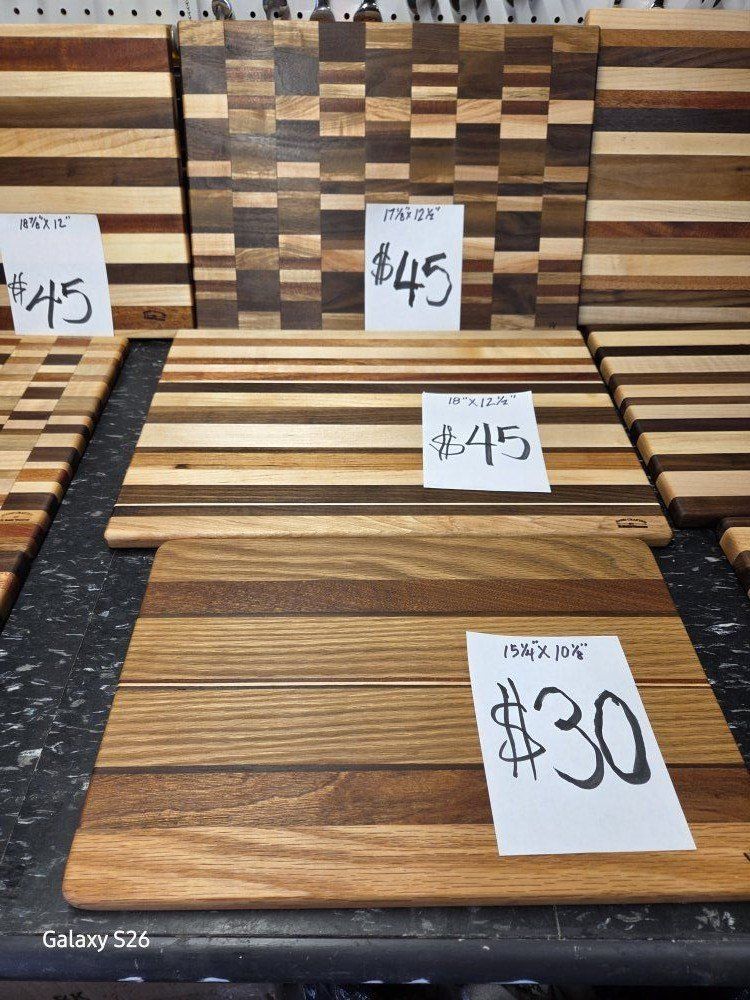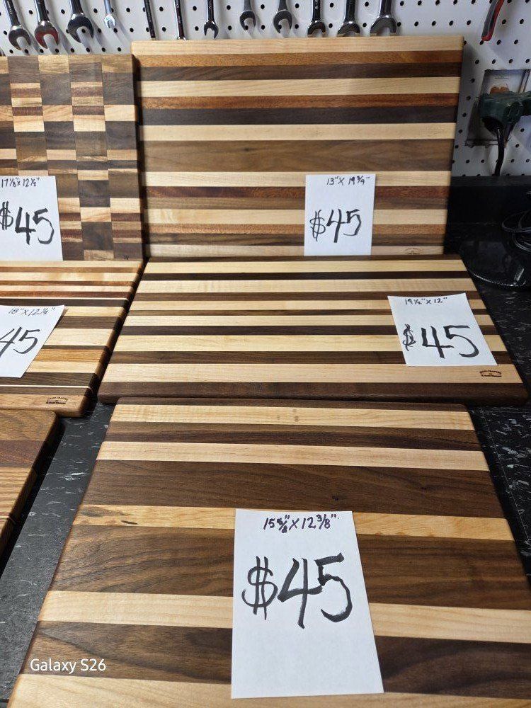 Hardwood cutting boards, hand made. Just in time for mother's day and father's day. price runs from $30 to $45 based on size and wood type. Cash only and must pickup in Springville.