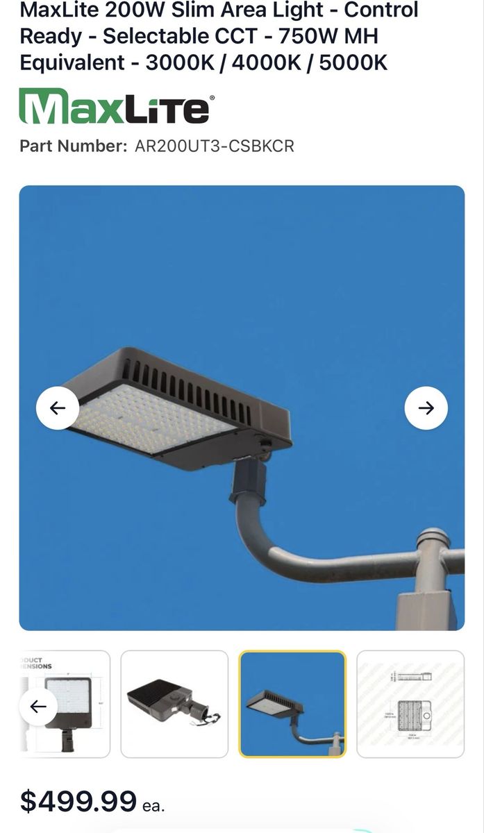 MaxLite 200W Slim Area Light - Control Ready - Selectable CCT - 750W MH Equivalent - 3000K / 4000K / 5000K