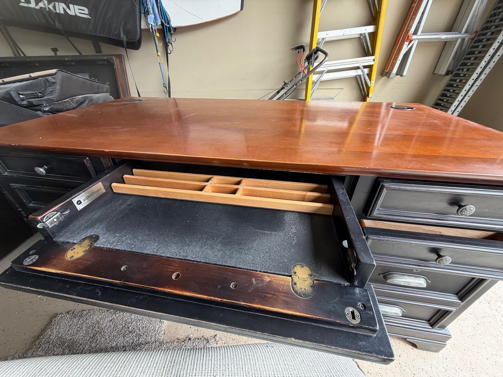 Why you want it: This is the kind of desk that costs $$$ new. Perfect for a home office, business, or anyone wanting a professional, high-end look without paying retail.