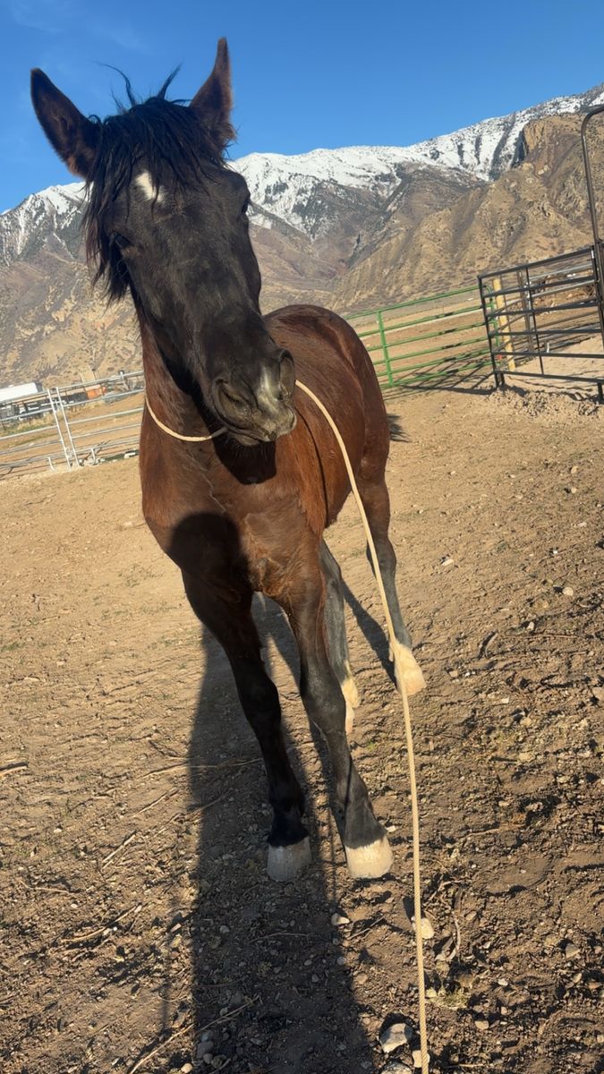 CashAppThis is my Mustang from delta bought him from the blm. he was a little young when I got him to start I did ground work and then waited another 8 months until he was built and looked grown and started riding him he’s bucked me off 1 time when a dog ran up around him he’d never been around dogs it was at a friends arena he not for beginners he needs more desensitization work and other than that he’s a super sold horse I do not ride him haven’t in a bit I just do not have the time and he’s not getting any better he’s 15-15.1 id say he walk trout lopes stops backs up no neck reining yet he’s a super sweet horse loves to be by people