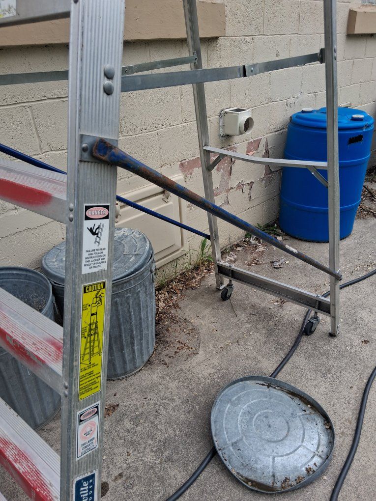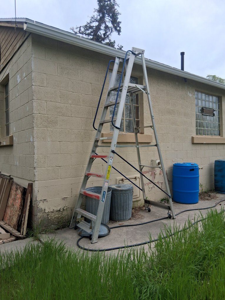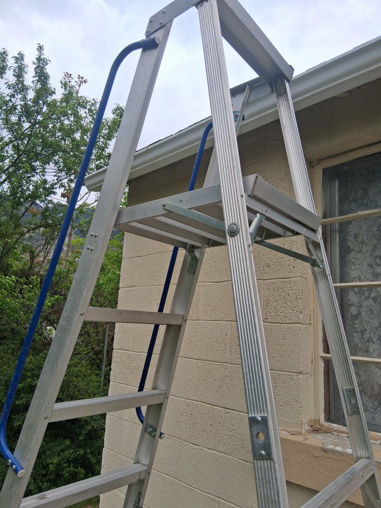 10' A-frame ladder with spring loaded wheels on both side and locking cross supports, has a platform at 7'6" to work off (16"x20") $300 obo 801-688-0060 Brent