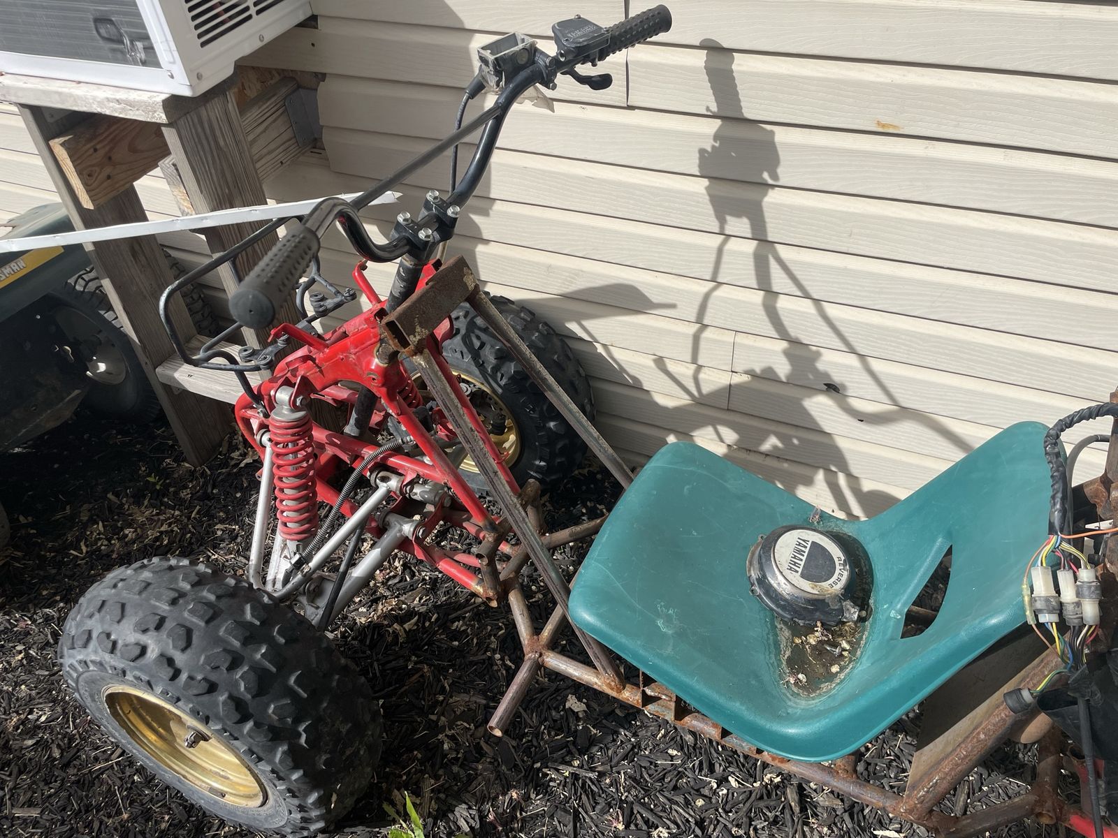 i bought this weird thing as is like a year ago and have never done anything with it. i was gonna use it to fix a different warrior potentially but that ship has sailed. it will probably run but needs a battery or the pull start fixed. looks like everything is still there. has some pretty good wheels and tires