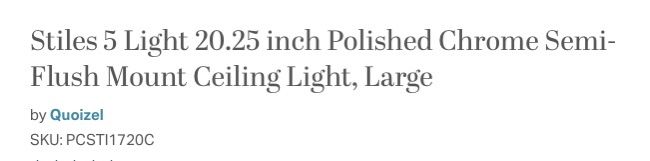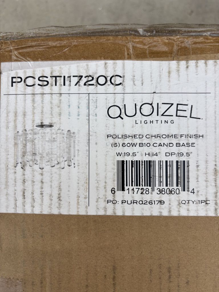 VenmoNEW IN BOX--QUOIZEL LIGHTING, STILES 5-LIGHT SEMI-FLUSH MOUNTED CEILING LIGHT, PCST11720C--GET AN AMAZING DEAL HERE FOR JUST $150! This is a discontinued model, but similar styles at Quoizel are $300-$450--on clearance!