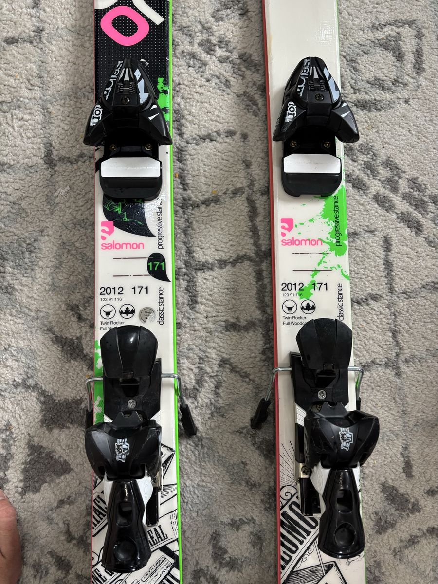 VenmoI have a set of Salomon skis and binding. I bought these to go out and try skiing but decided just to stick with snowboarding. They are Salomon 171 twin rocker full wood core. No idea about the bindings. $40 or best offer. My wife wants these out of the garage.
