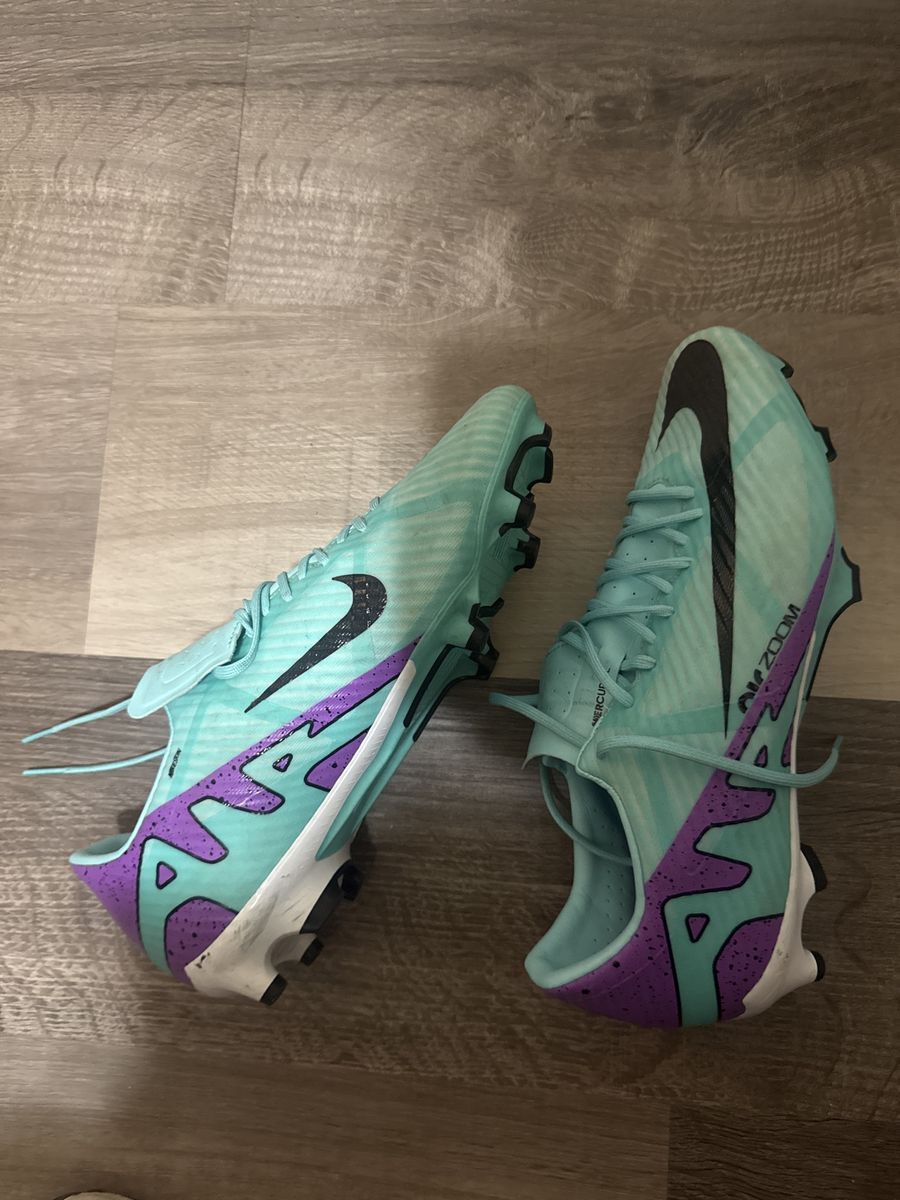 VenmoNike Mercurial Vapor 13 cleats in a teal and purple colorway. Lightweight and built for speed—great for games or practice.