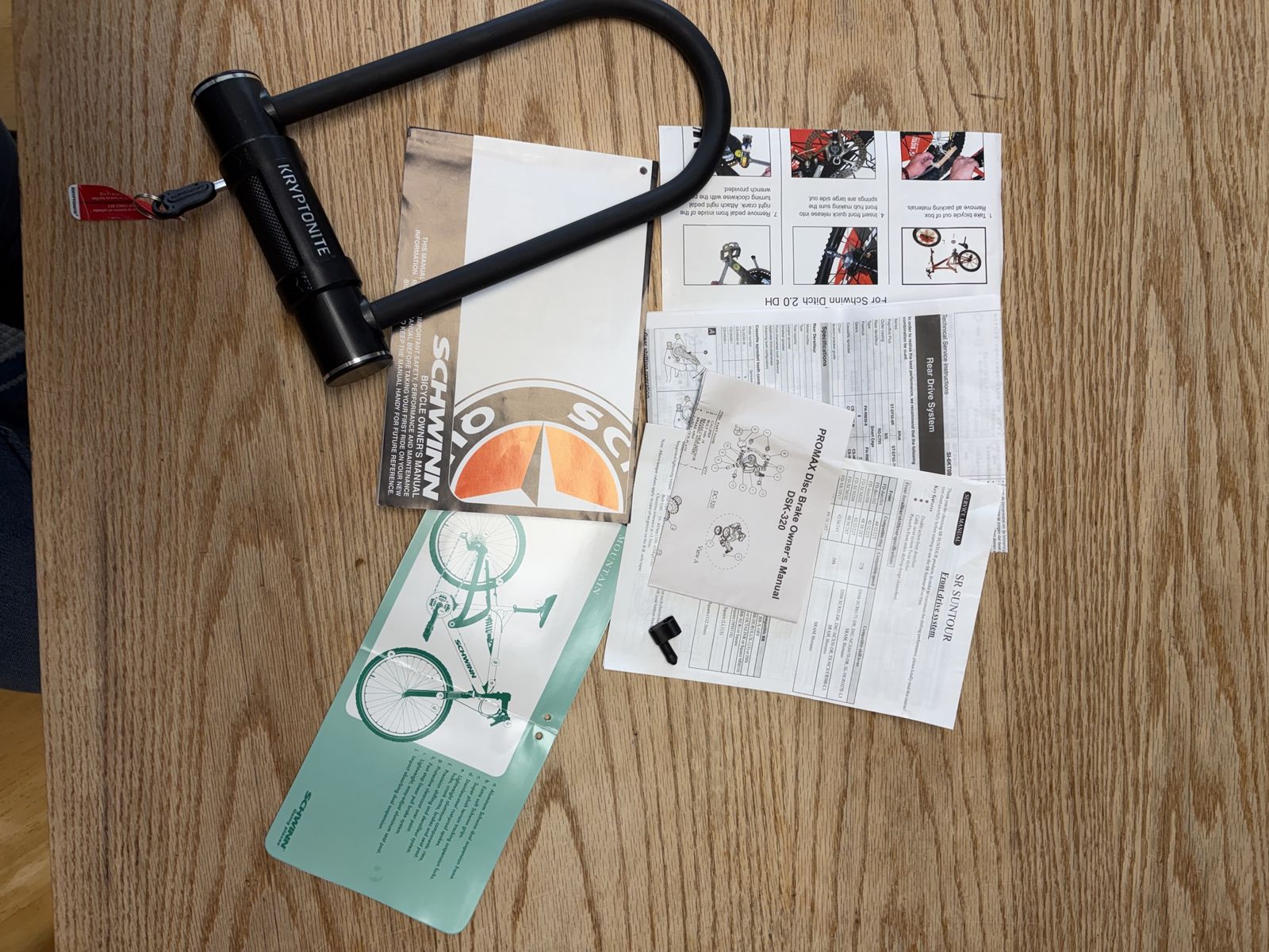 26” Schwinn Ditch 2.0 DH Mountain Bike, with user manuals, plus a Kryptonite U-lock with key, and reflectors. Cash only.