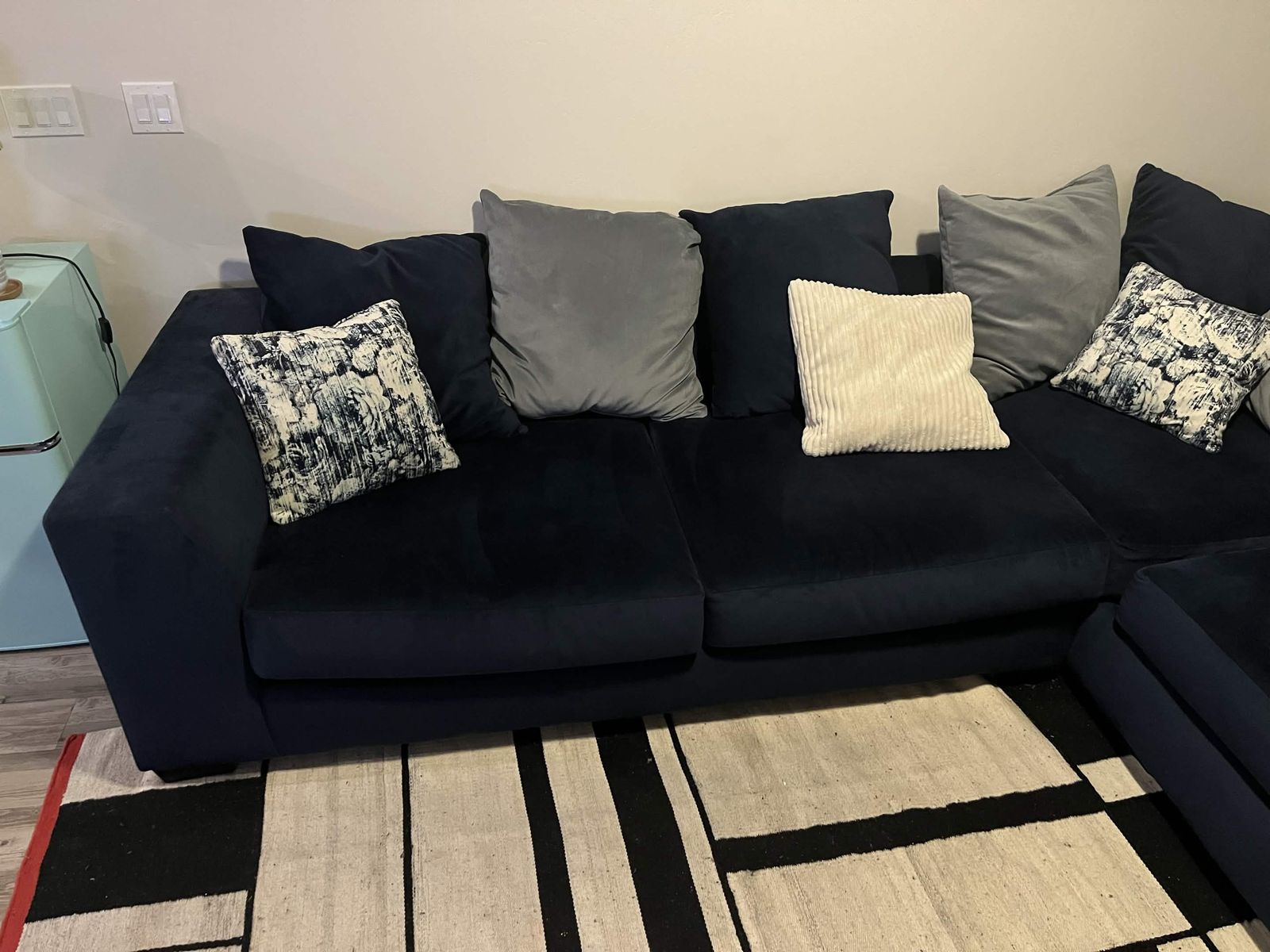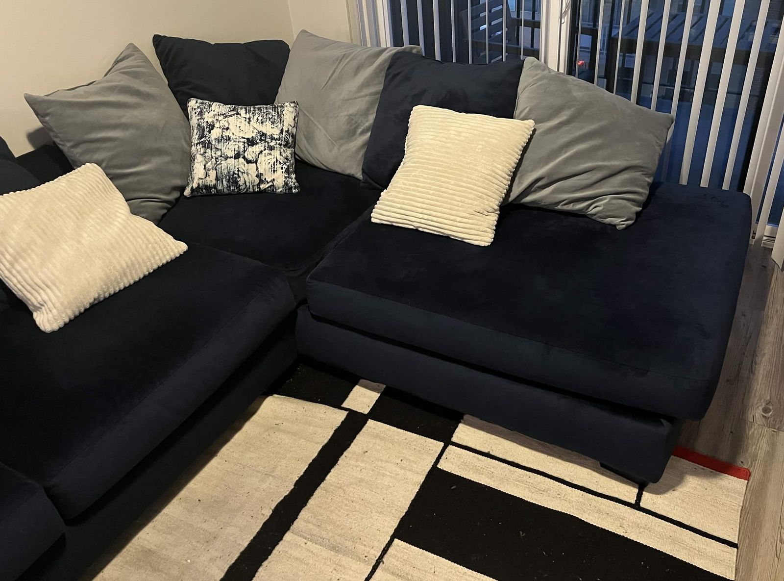 PayPal(PRICE NEGOTIABLE) This couch is less than 3 years old and has been well kept. It comes with all the pillows shown in the picture. Approx. 10 ft wide; shortest part comes out 3.5 ft whereas the longest side comes out 7.5 ft. My old roommate had cats, but it has since been professionally cleaned and there have been no issues since. One pillow has a few minor yellow nail polish stains. I love this couch! My friends fall asleep on it all the time, the only reason why I’m getting rid of it is because I’m not taking it with me in my move.