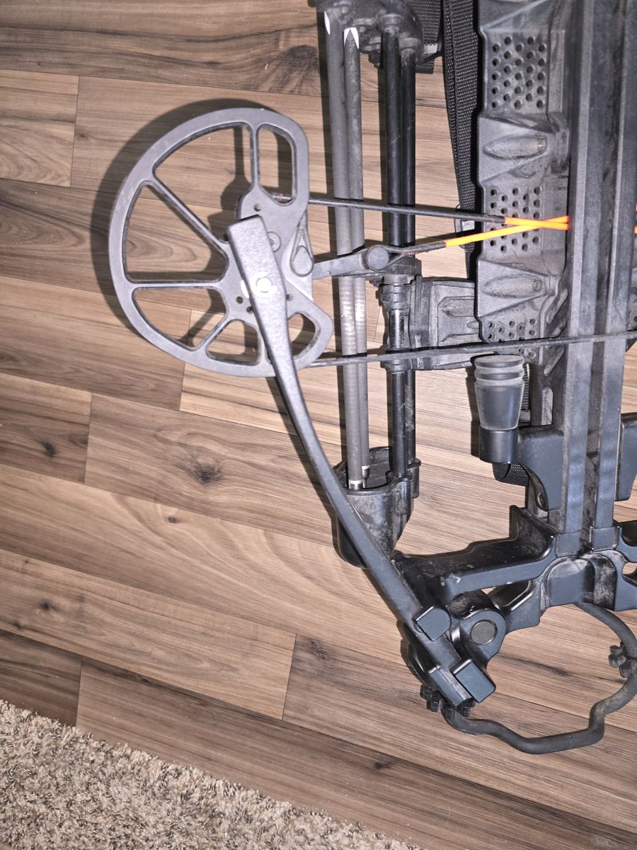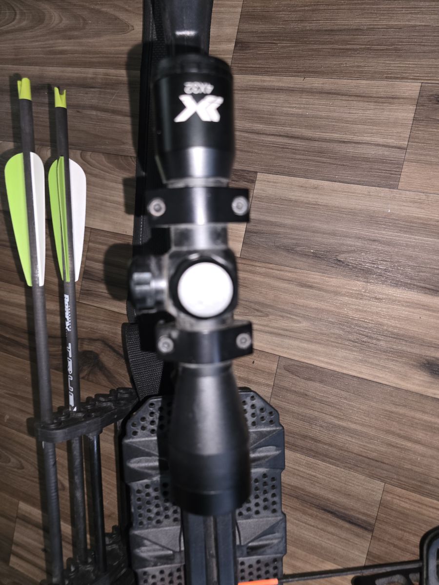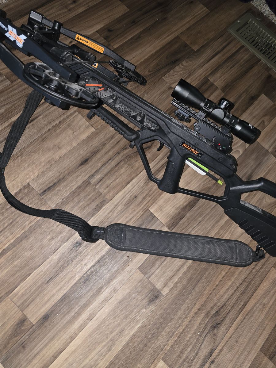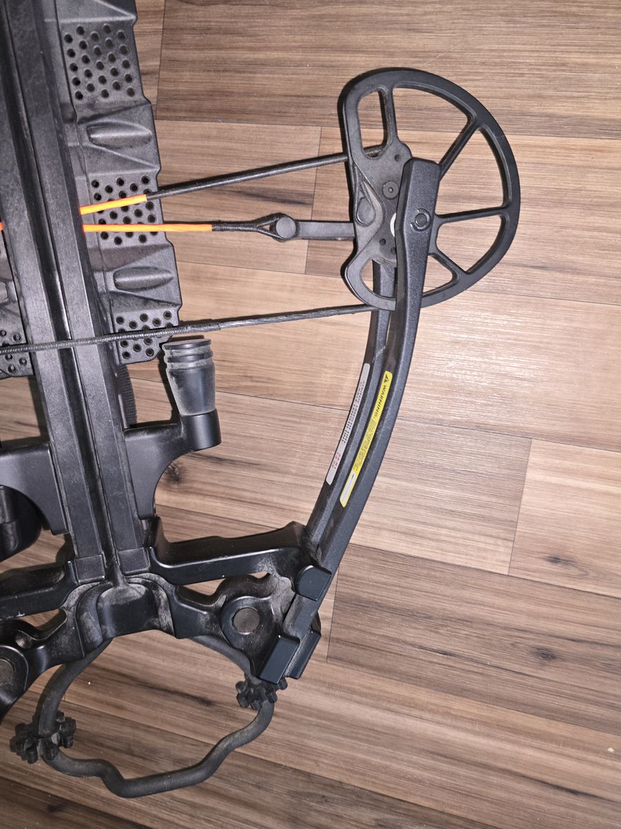 Complete with everything you need to get out into the woods today, the Bear X Intense CD crossbow delivers intensely powerful performance in a compact package. This lethal crossbow measures only 10” wide when cocked and 14” wide when uncocked. Once cocked, the 12.7” power stroke fires arrows at a hard hitting 400 feet per second. This ready-to-hunt crossbow package includes 3 Bear X TrueX arrows, scope, 4-arrow quiver, cocking rope, and rail lube / string wax.