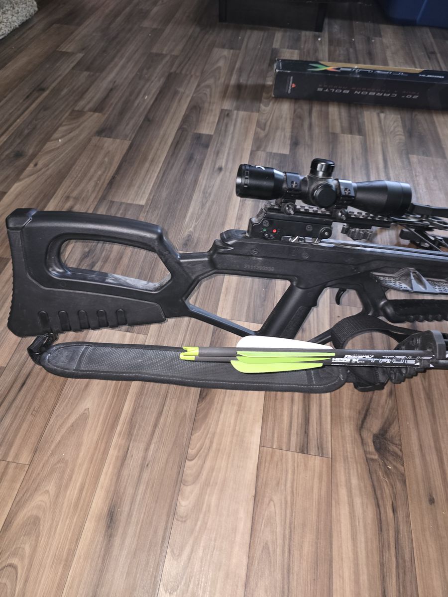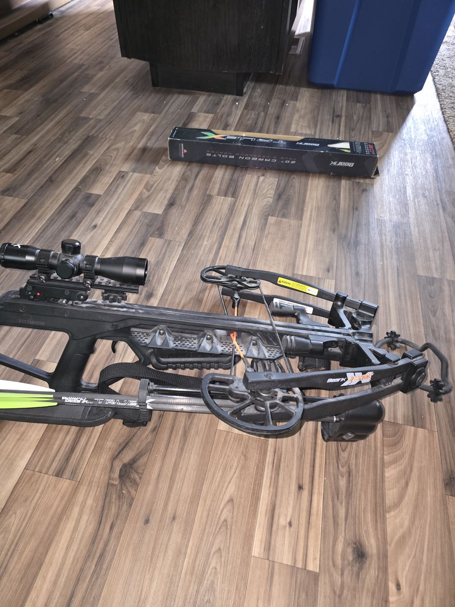 VenmoBear X Intense CD Crossbow with 2 single and one 6 pack of Bear X TrueX Carbon Crossbow Bolts with 100 Grain Field Points