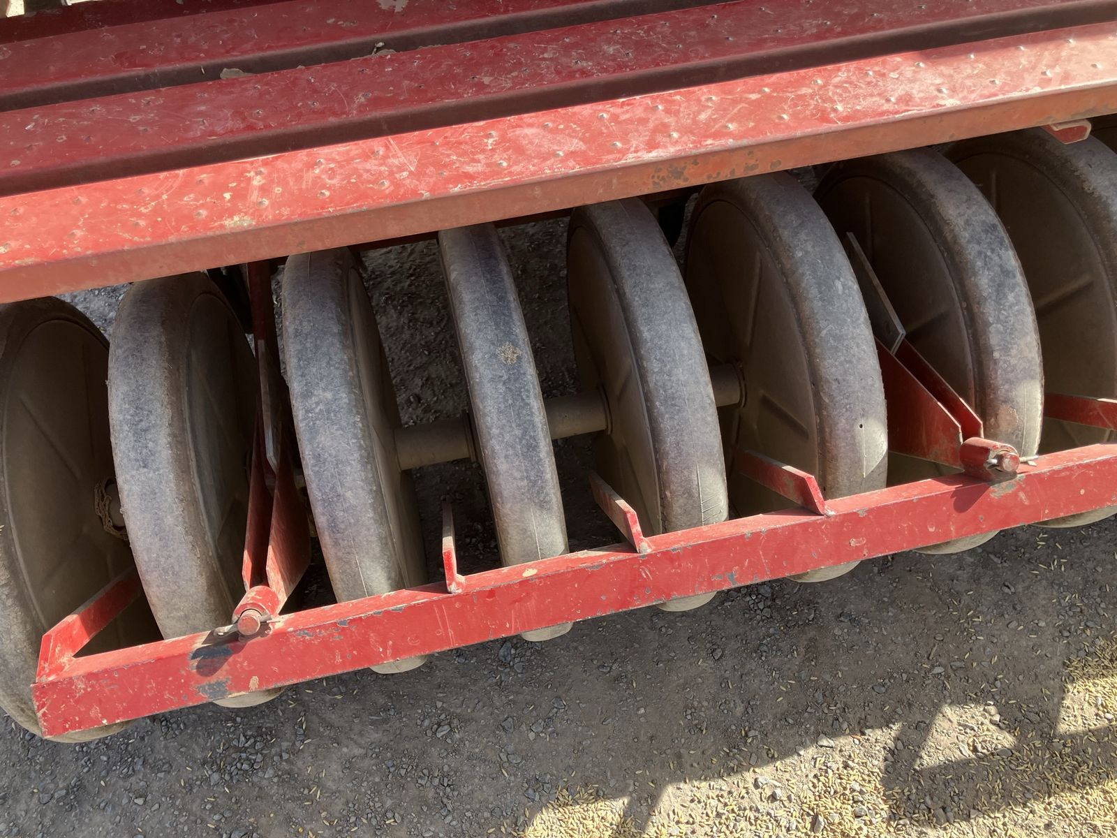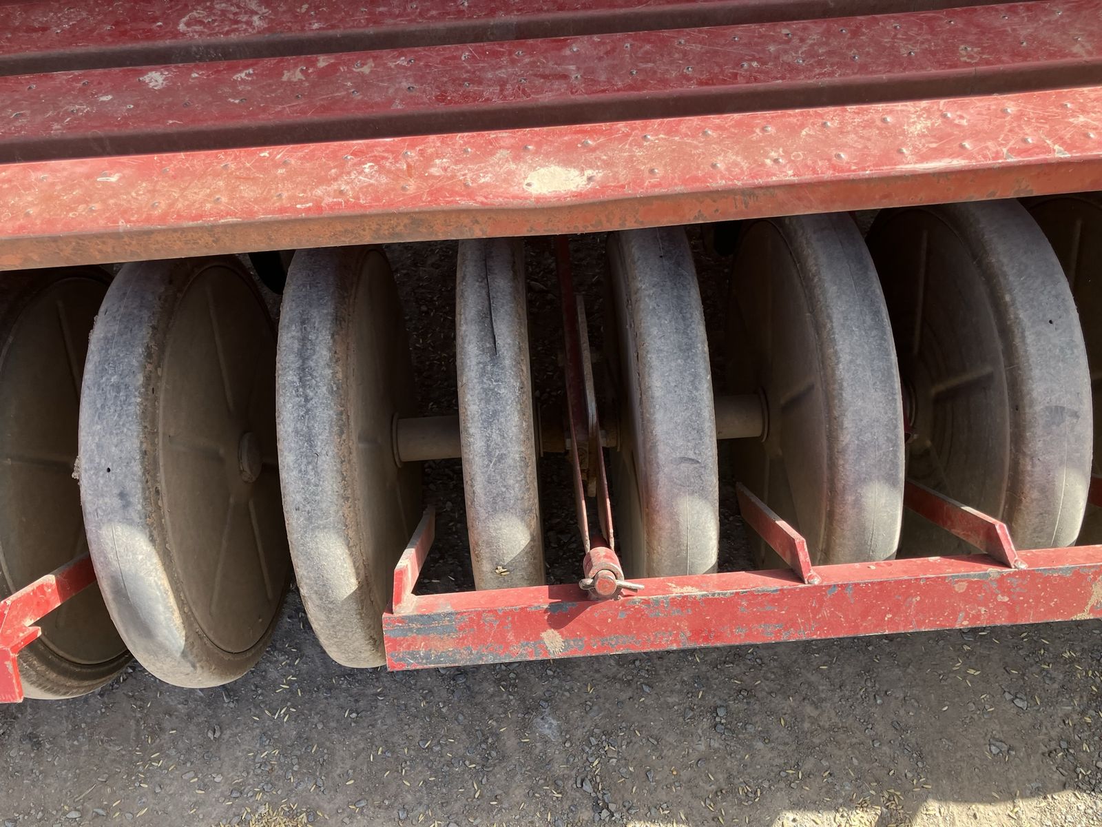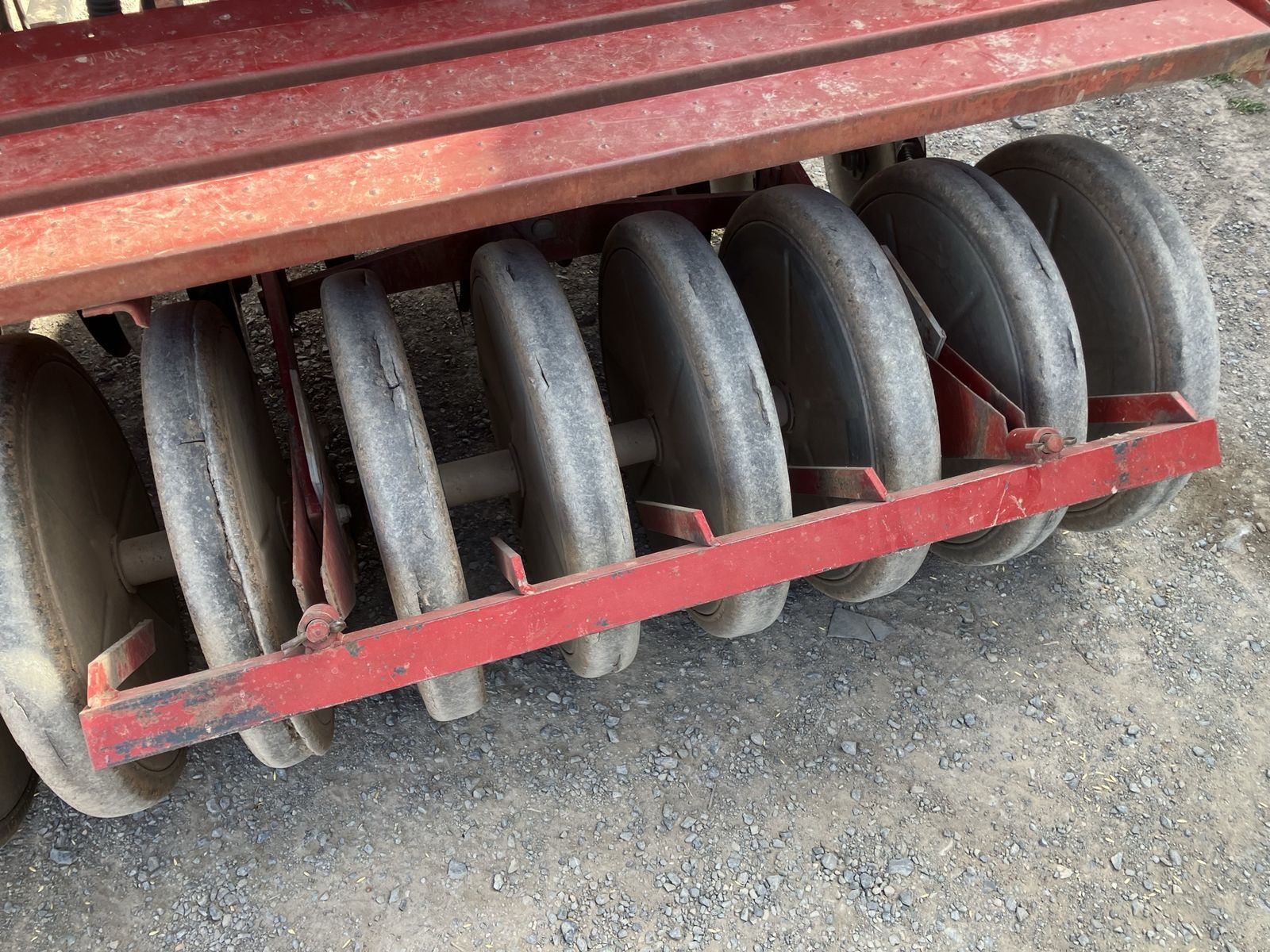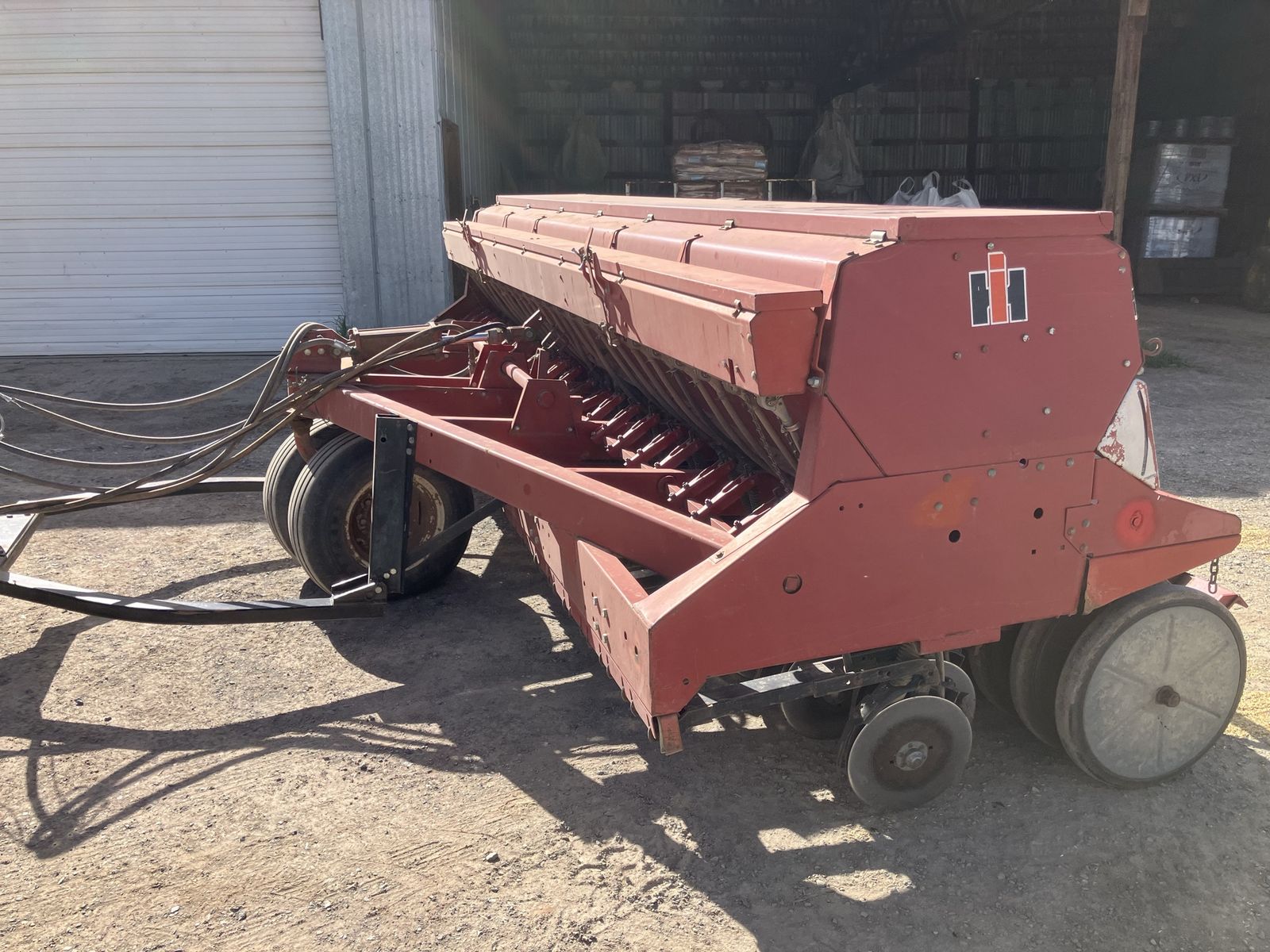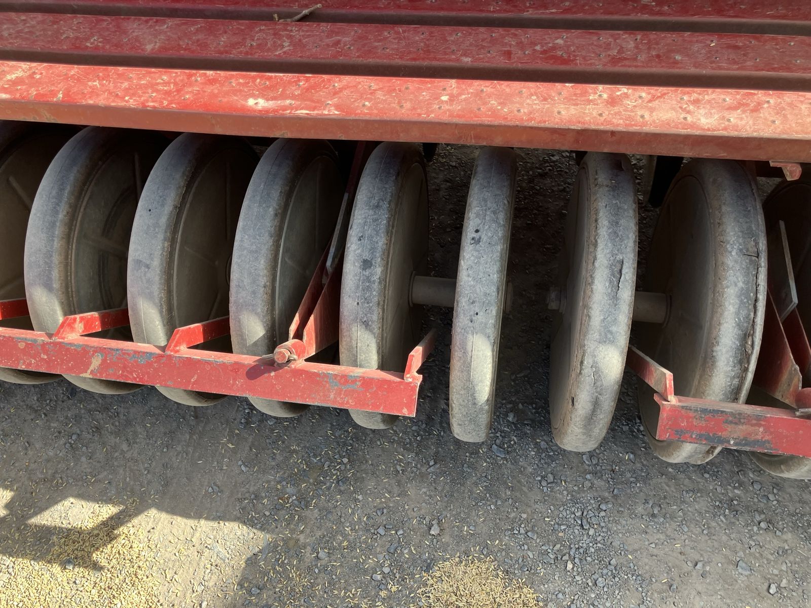 Drill in good shape for age. 14 feet wide. Has alfalfa seeder. Always stored under cover when not being used. Some of the rubber press wheel tires have some cracks but there is 11 new rubber tires for press wheels that will be included. Selling because up graded to a newer drill.