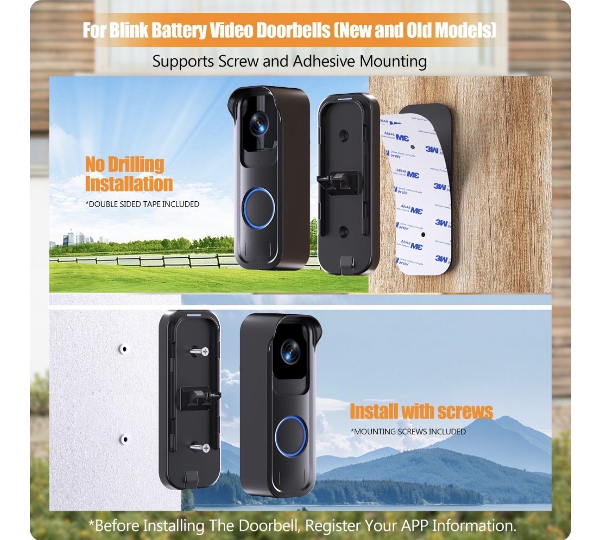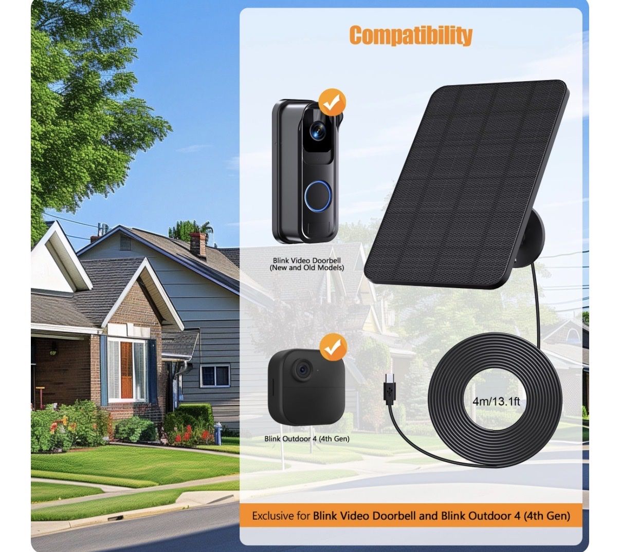 VenmoSolar Charger and Mount for Blink Video Doorbell&Blink Outdoor 4(4th)(Not Included),4W Solar Panel Waterproof with 13ft Charging Cable and No-Drill Doorbell Mounting Bracket for Blink Doorbell Camera