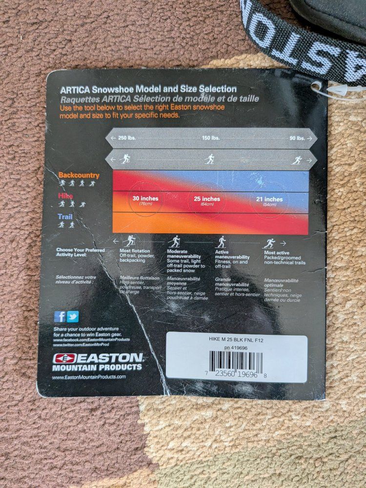 PayPalUp for sale is a Easton Hike 25 Snowshoes BRAND NEW WITH TAGS Aluminum Backcountry Snow Shoes. 8" x 25" Located near Park City, Utah. 50 dollars, cash or venmo. Message for more info