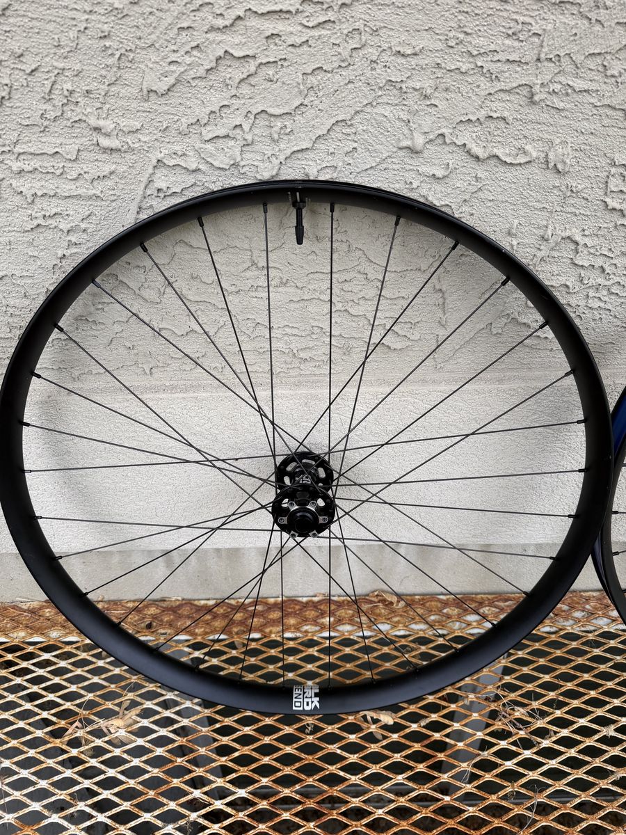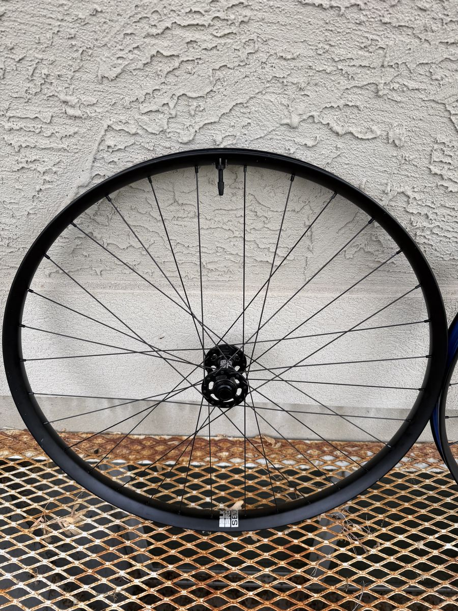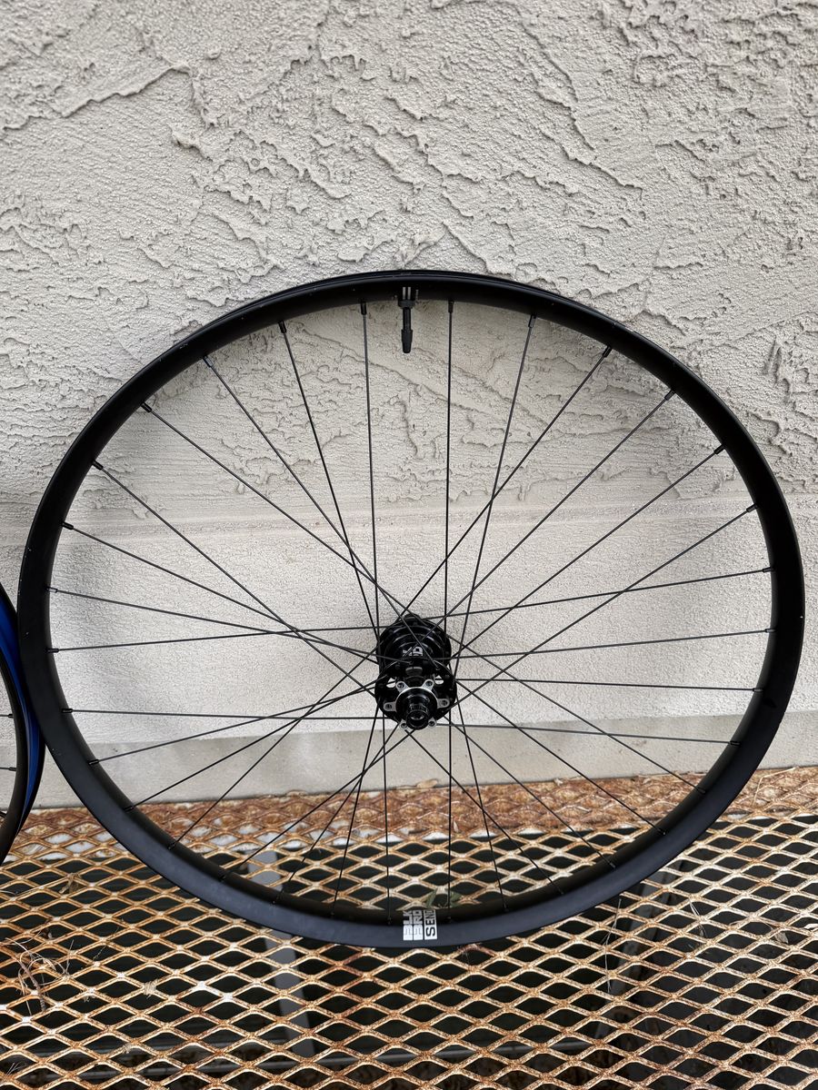 Ibis Blackbird Send alloy 29er wheelset with 6-bolt rotor mount and Sram XD driver. Boost front and rear. Less than 80 miles on these so they're in superb shape and true. Tubeless tape and valves installed.