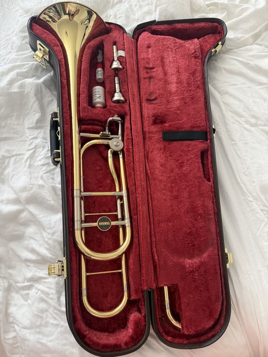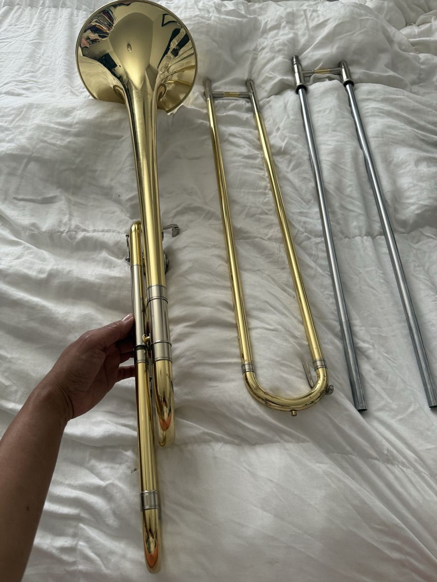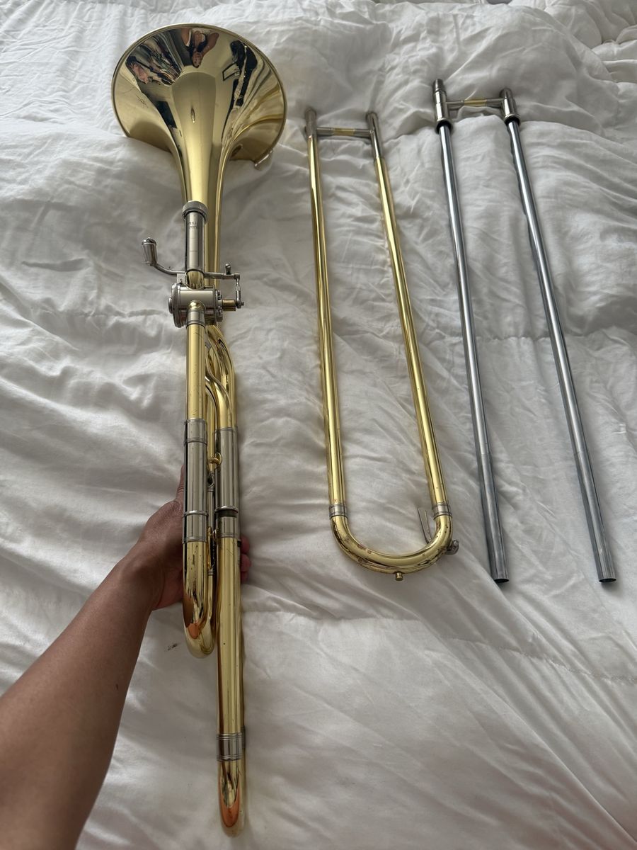VenmoProfessional trombone. It’s in super nice condition. Slides perfectly. Minor signs of wear but nothing major. No dent. Case is in bad shape, but it’s still Functional. Selling because I need cash.