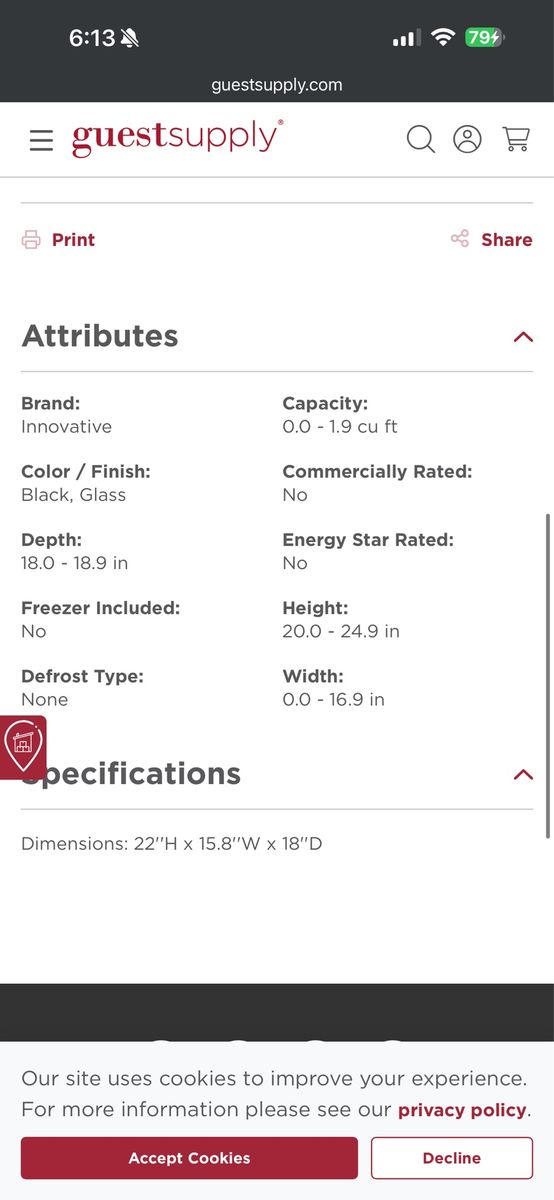 VenmoInnovative Hospitality Compact Refrigerator, 40L, Auto Defrost