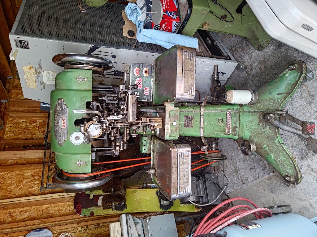 Landis K curved needle machine. Works but needs some timing adjustments. Comes with some replacement needles needles and awls. Runs on 220v