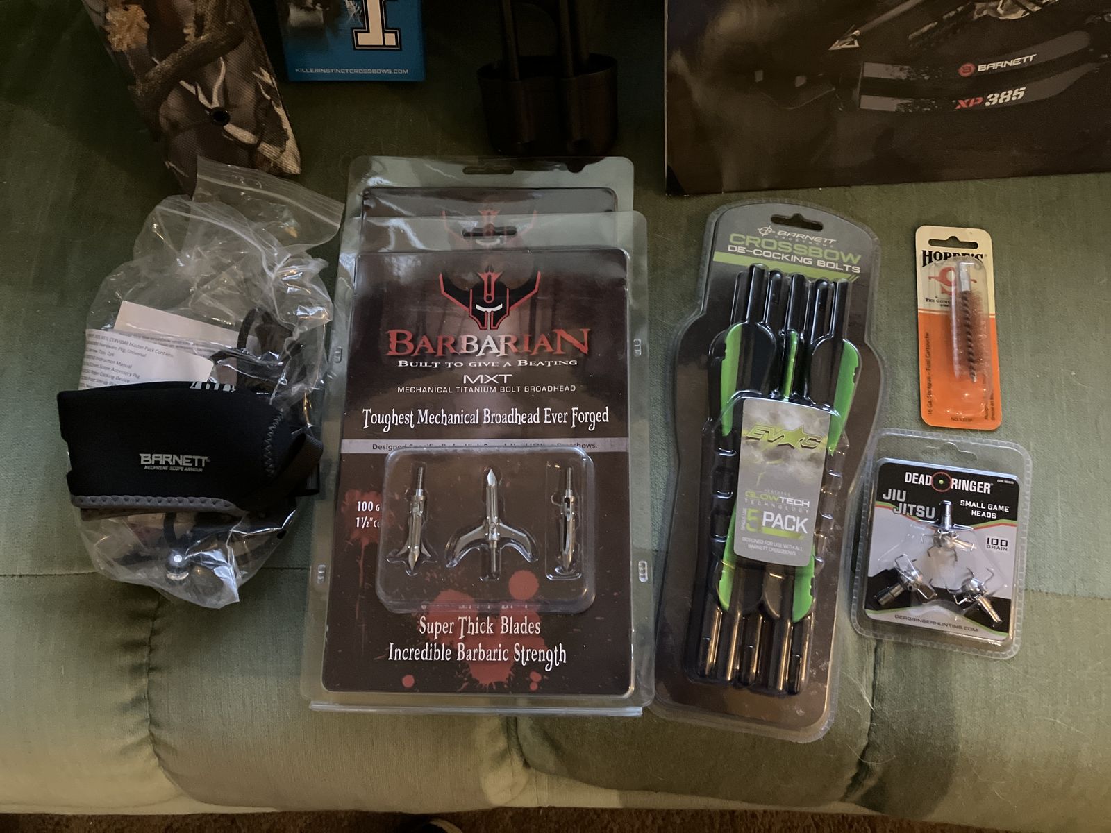 Crossbow - brand new. Barrett 250 with all accessories shown in pictures. Brand new, never been fired. I paid 499 For crossbow, and then accessories extra. Selling all for 400, text only