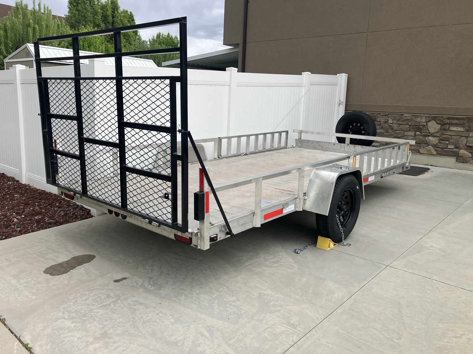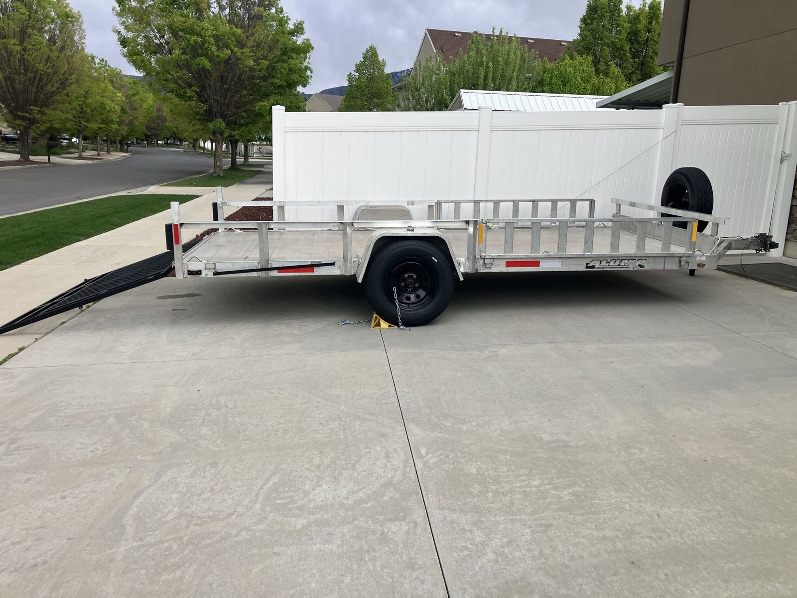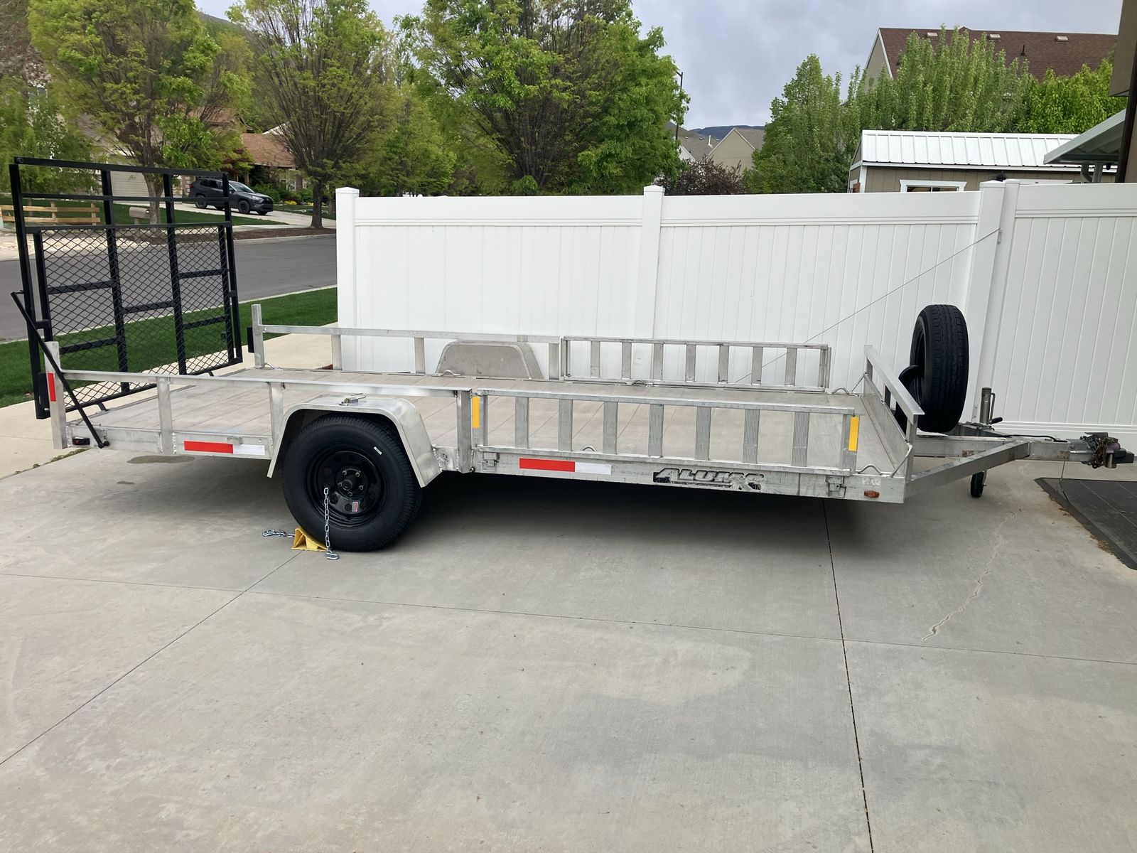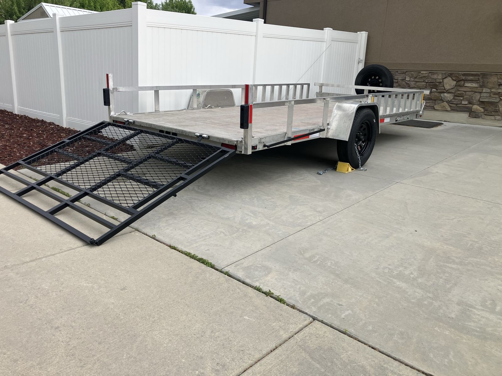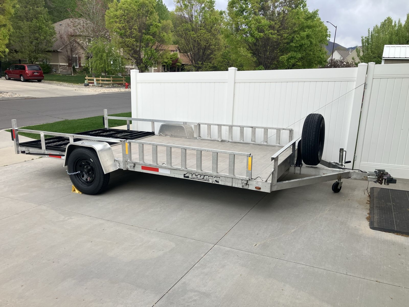2010 Aluma 8114, 2” coupler, dual safety chains, 3500lb torsion ez lube axle with brand new 15” rims and 205/75R 15 tires. Added front and side rails, spare tire and new mount, added new rear gate/ramp that folds down into the bed. Added a few new lights and wheeled tongue jack. Light, easy to move around, pulls great. Clean Utah title.