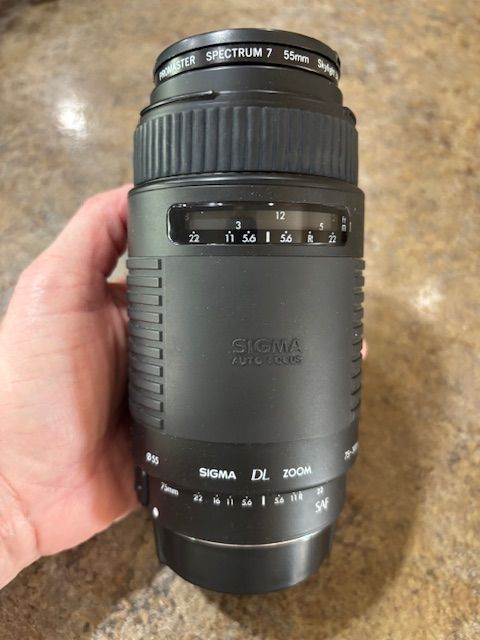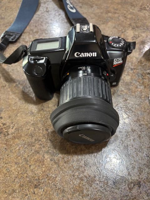 VenmoCanon EOS Rebel L-X, 35-80 mm lens, Sigma Pro master Spectrum 7 75-300mm telephoto lens, Vivitar 52mm lens, rechargeable batteries, Bag, Instruction book.