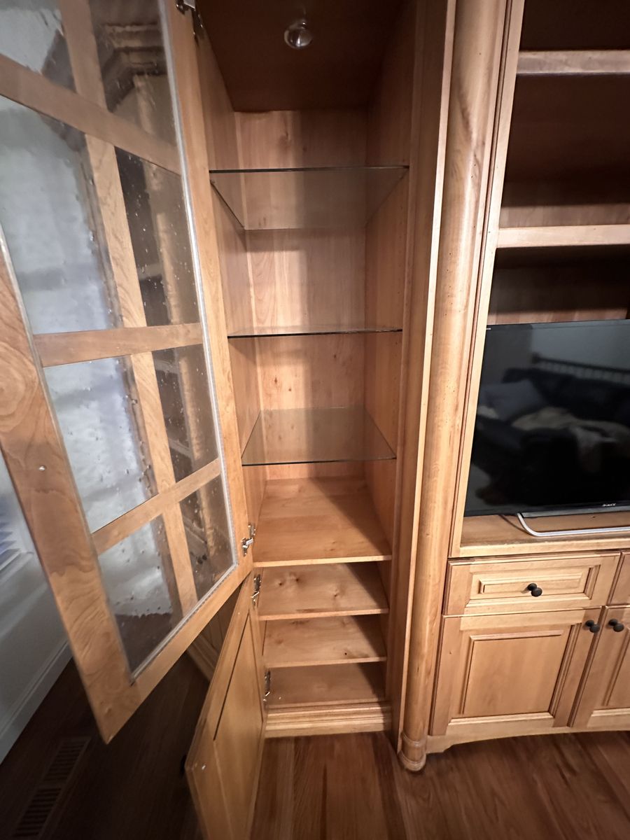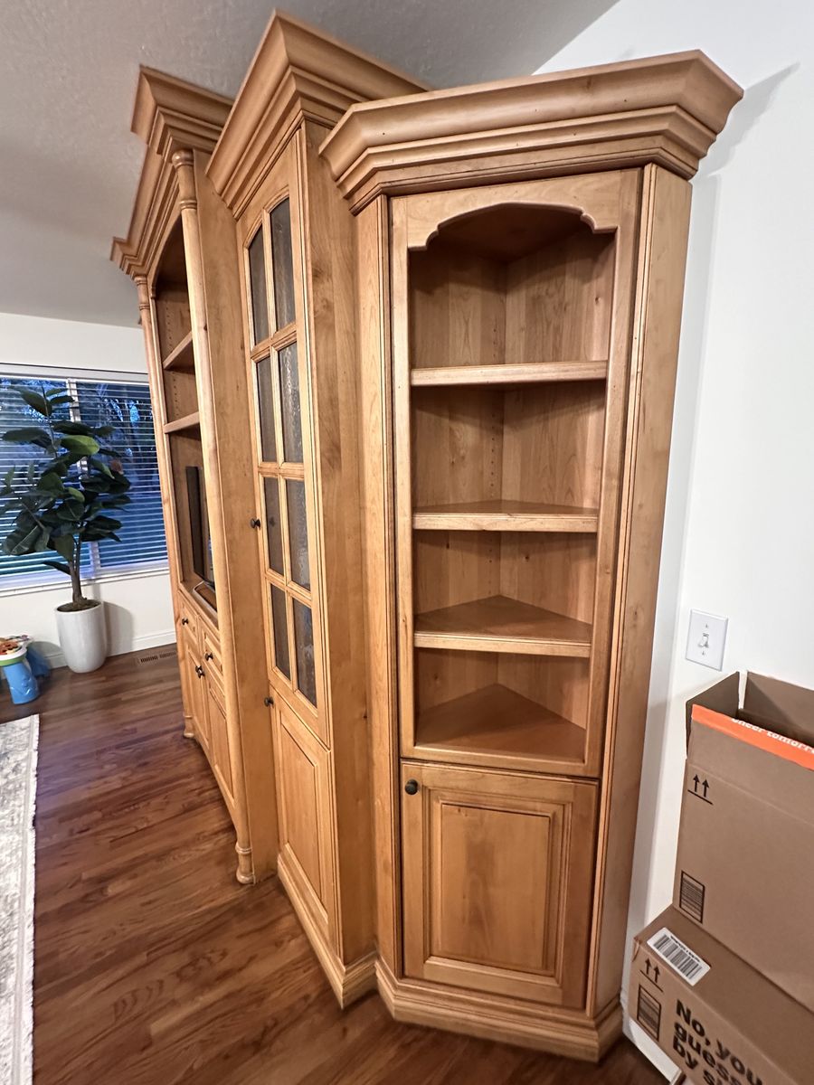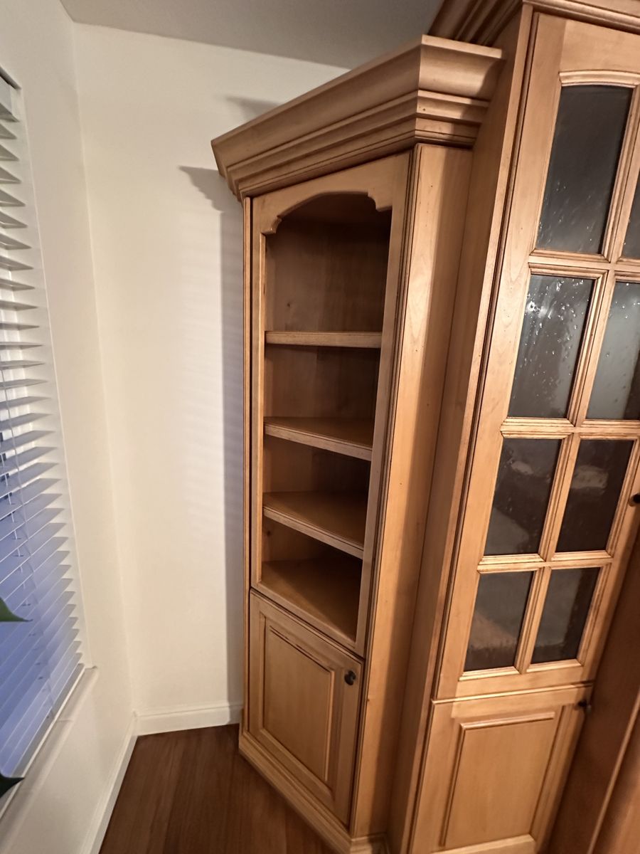 ApplePayI believe it is Alder wood. 8 feet high. Approx 11 feet wide. Attached to wall. Prefer buyer remove. Buyer must be able to transport from house.