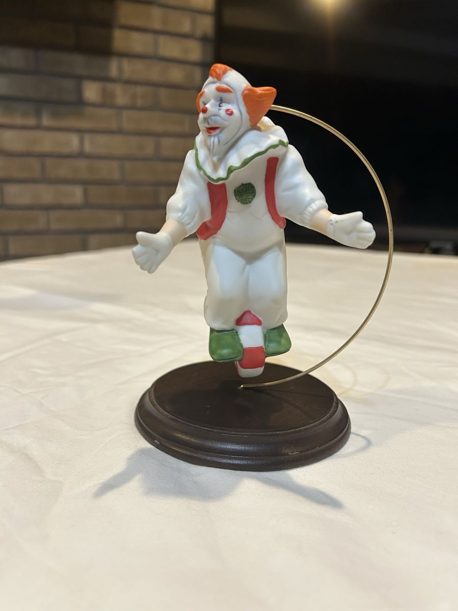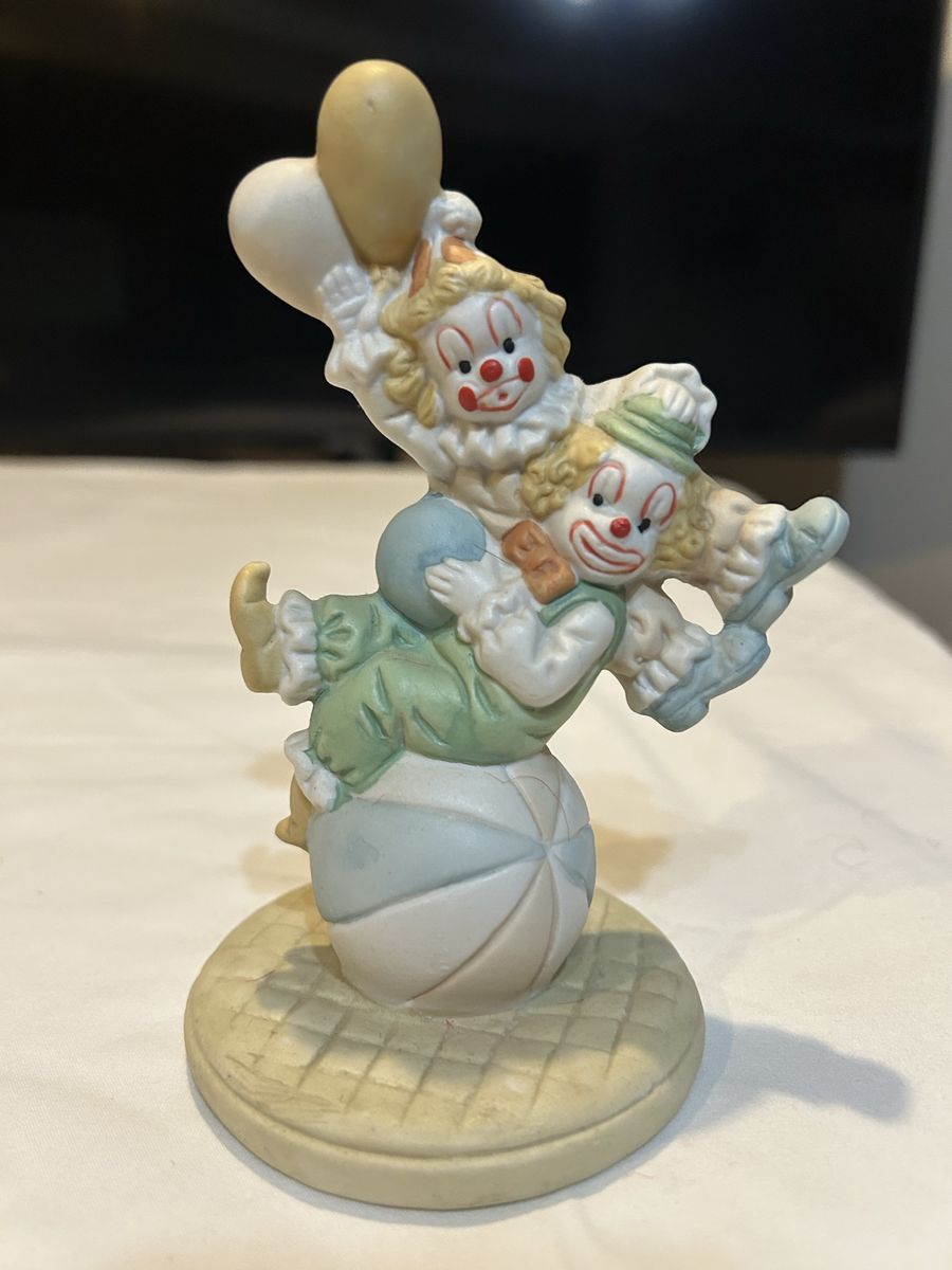 Vintage Clown Figurines Collection Decorative Circus Clowns Mixed Lot Collection of vintage clown figurines in various poses and styles.