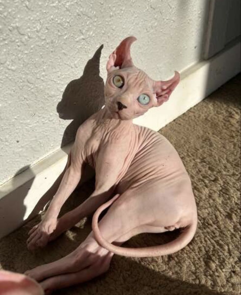 CashAppI have a small litter of Sphynx and American Curl hybrid kittens ready to find their new homes. Their mom is my Elf eared Sphynx and their dad is a purebred American Curl. Because of this mix, the kittens have a really fun variety of ear types. Some have the traditional Sphynx ear shape while others have soft little Elf style curls. Each kitten is different and has its own look.
