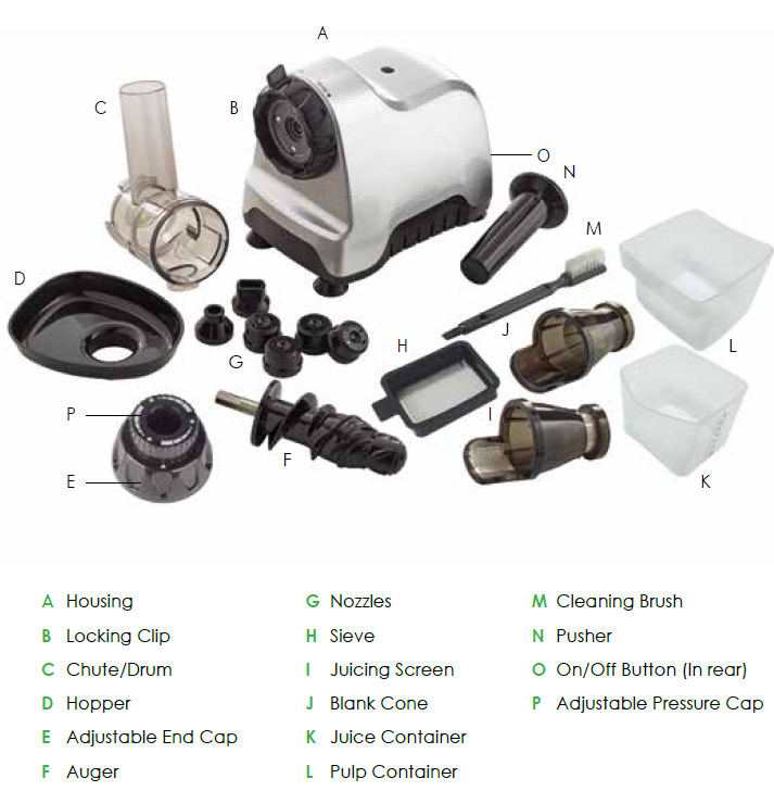 Uses slow speed to extract juice from fruits and vegetables including celery, wheatgrass, carrots, leafy greens - pretty much any fresh produce. Lower speed = quiet, peaceful juicing experience.