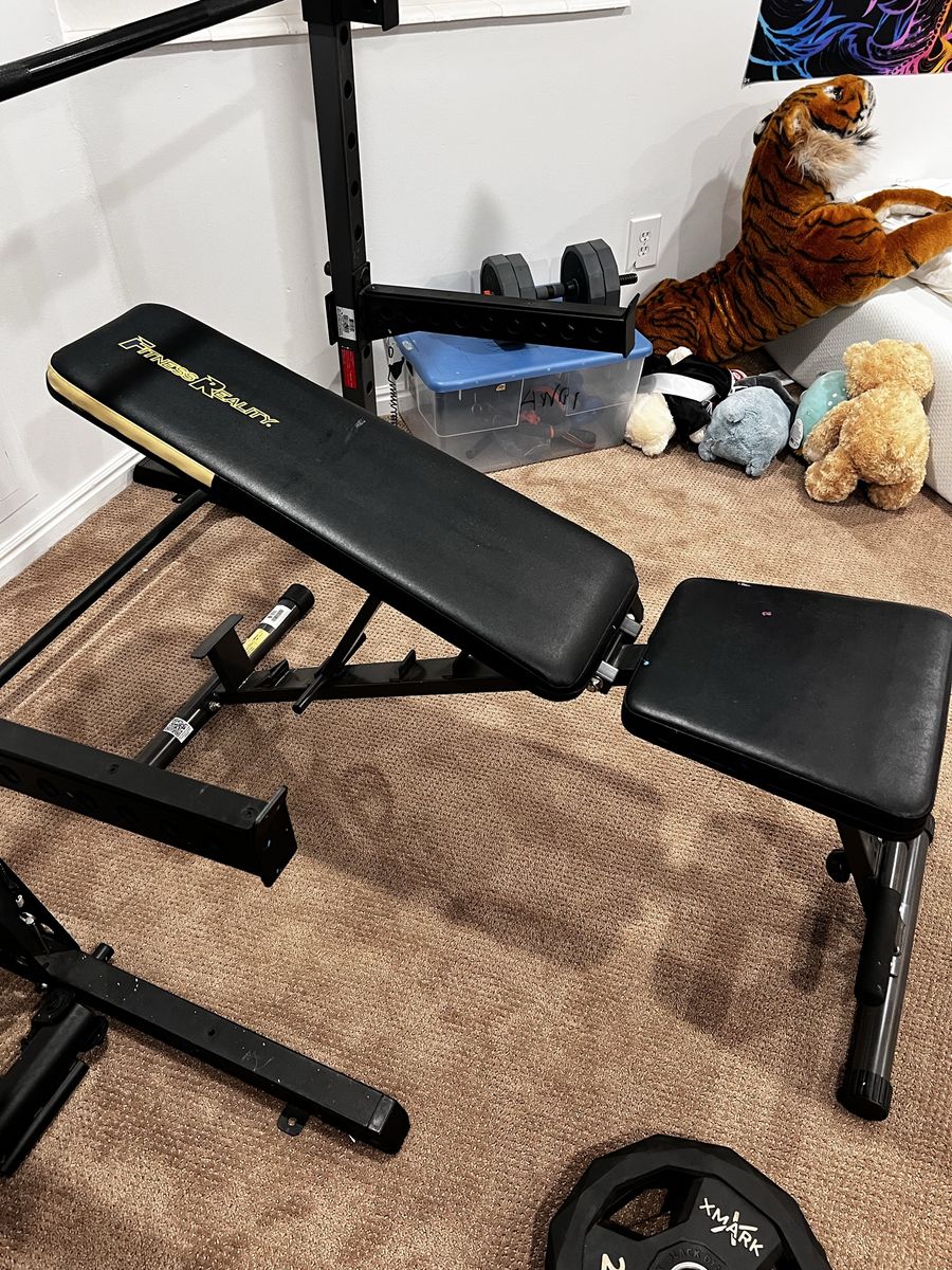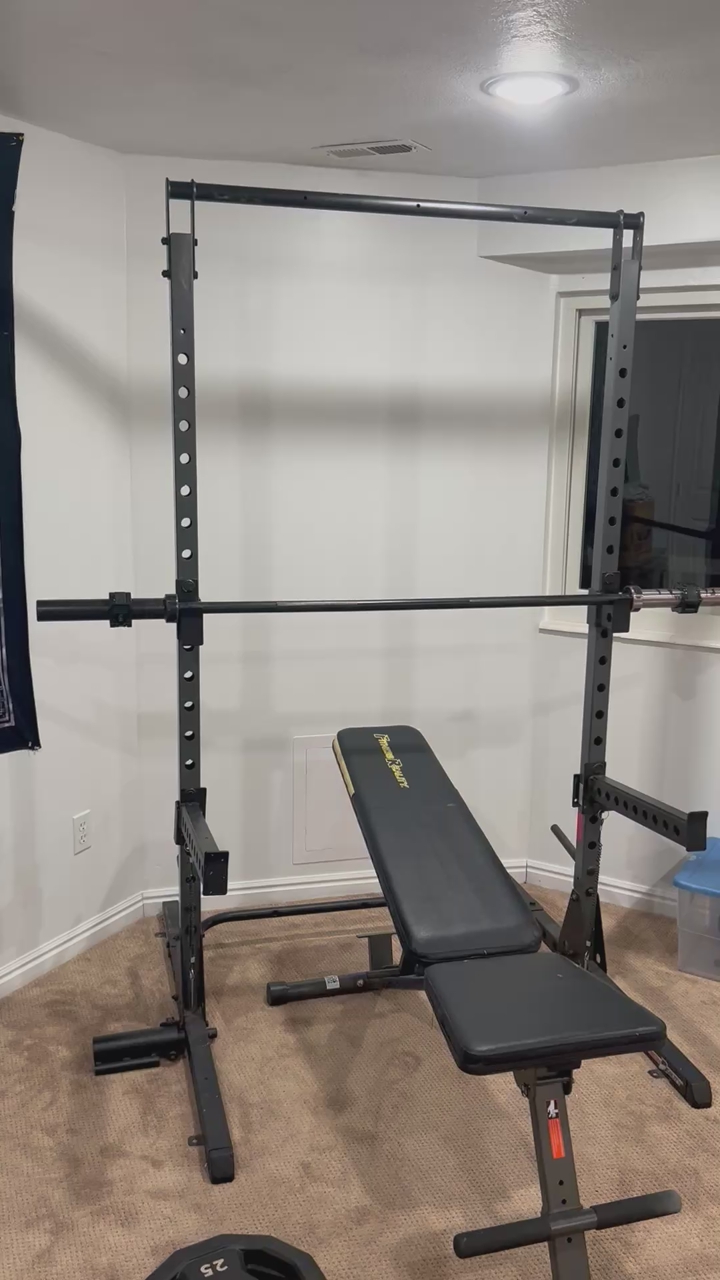 Clean setup overall and ready to use. Normal cosmetic wear from use, but everything looks solid. Great for bench press, light home workouts, and building out a garage or basement gym.