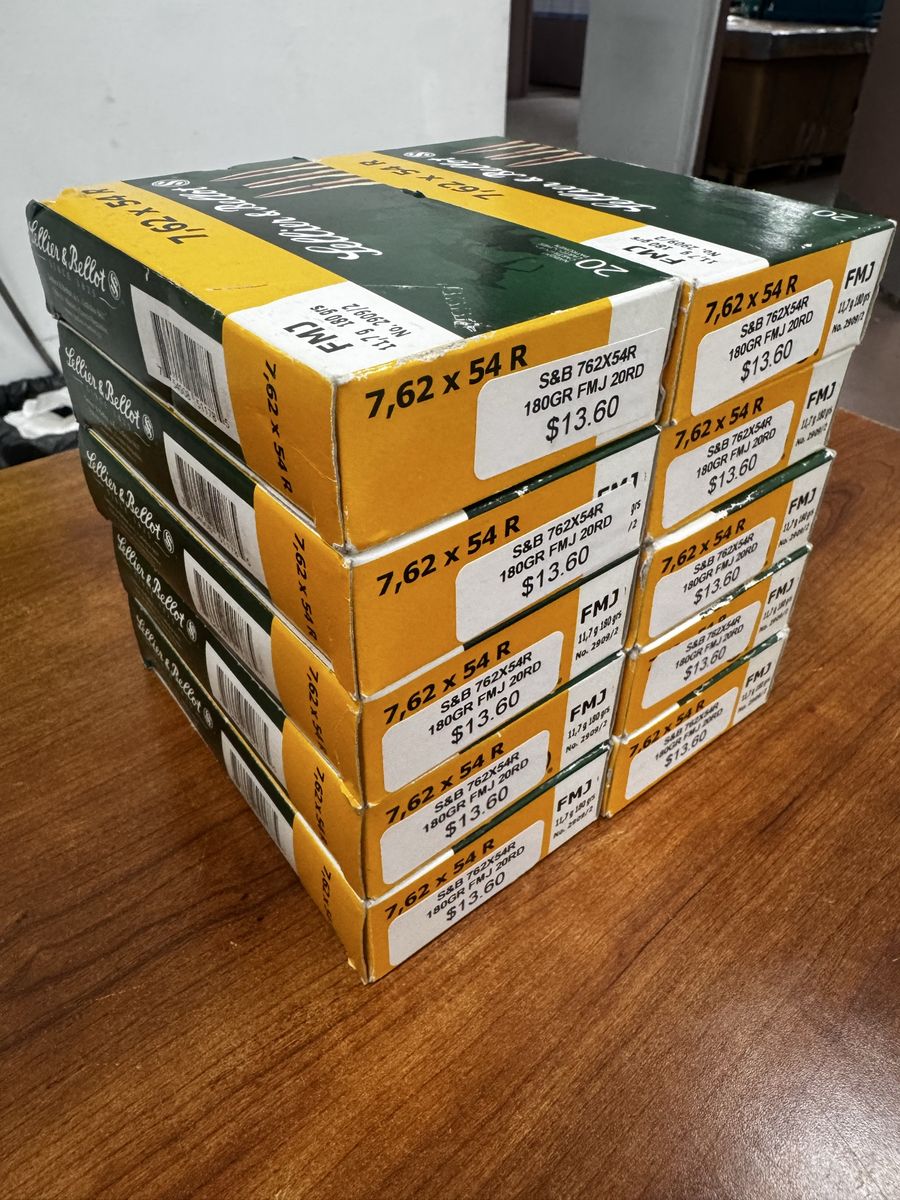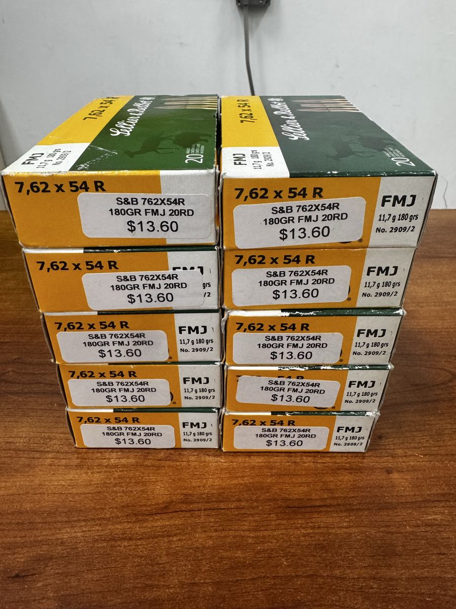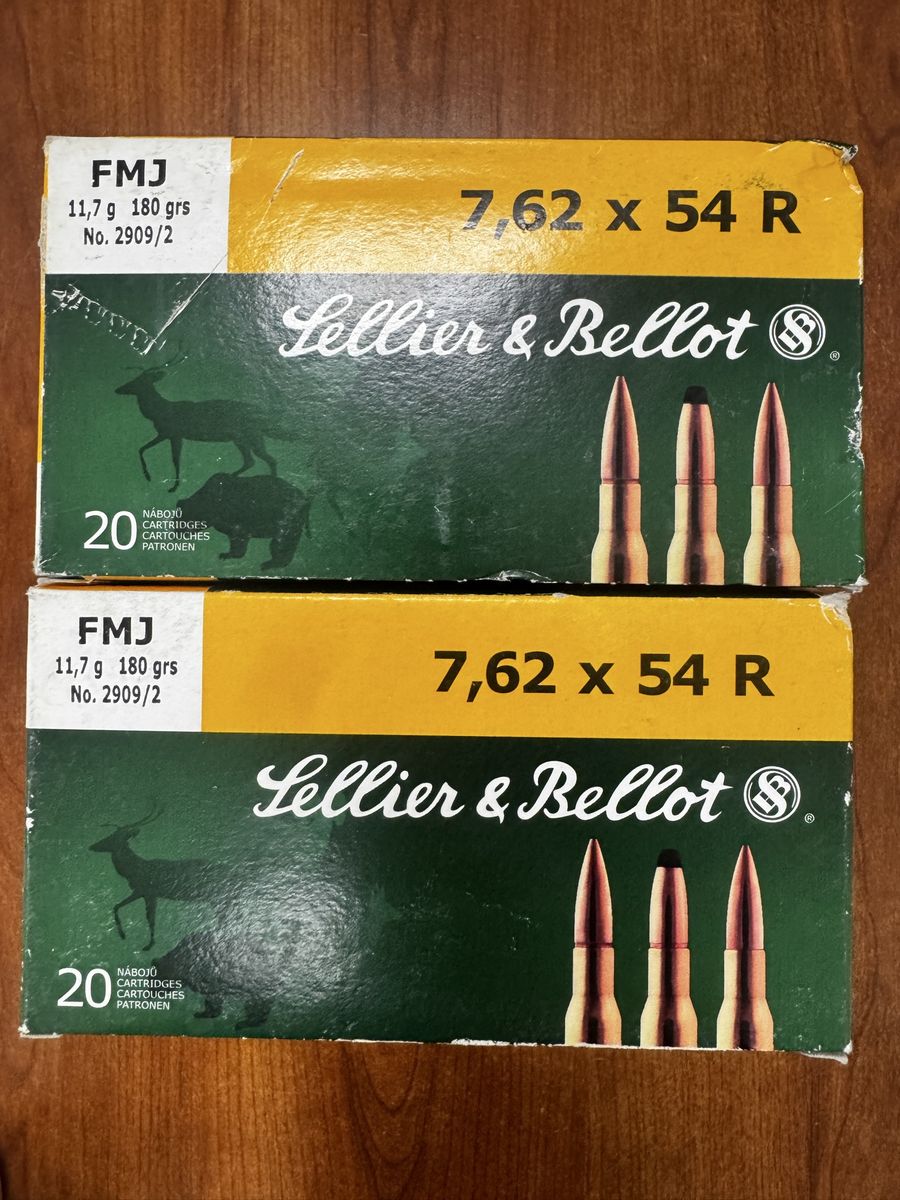 Venmo191 rounds of Sellier & Bellot 7.62x54x54R 180 grain FMJ. Brass cased, Boxer primed and reloadable. Non-corrosive. Czech manufactured. Perfect for Mosin Nagant, SVT-40, PSL or any rifle chambered in 7.62x54R. All boxes sealed and unopened. Local pickup only