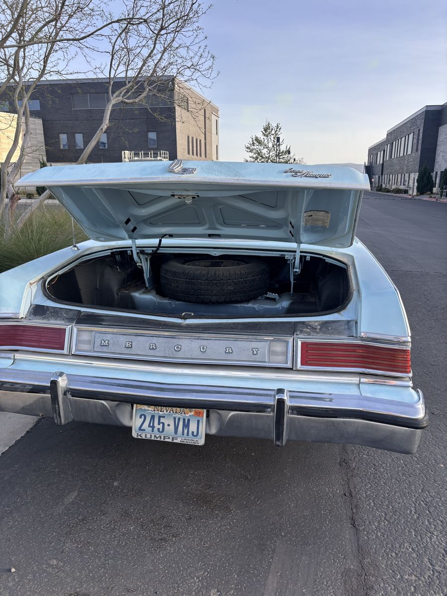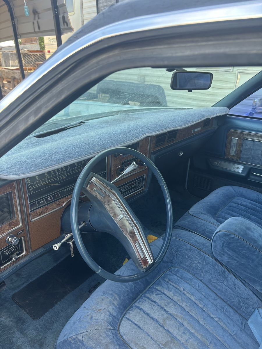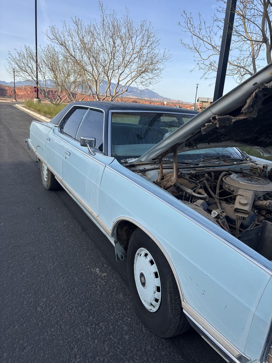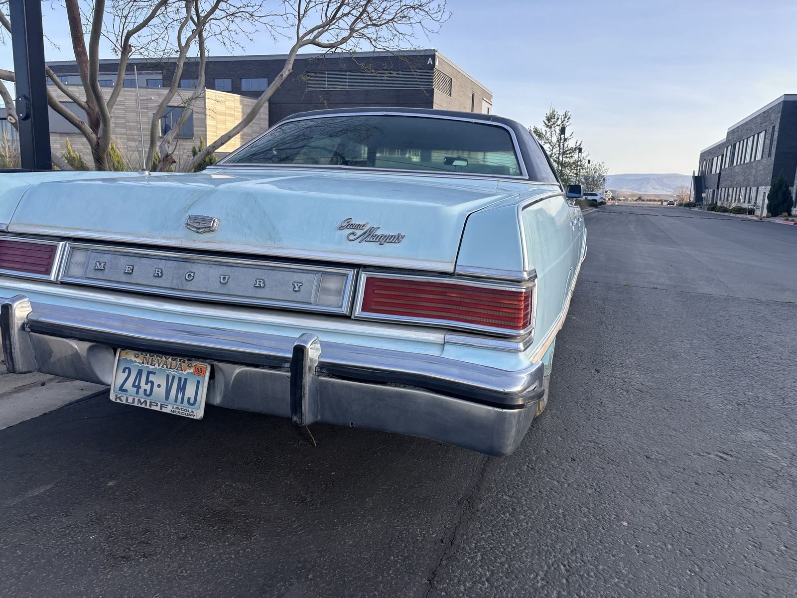 Classic full‑size luxury cruiser in a beautiful light blue with a dark blue vinyl roof This ’78 Grand Marquis is complete, straight, and fully functional in every area except the engine.