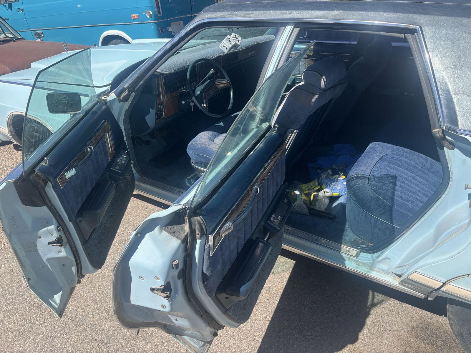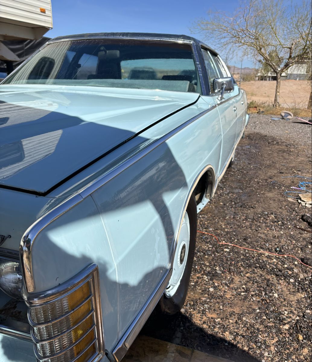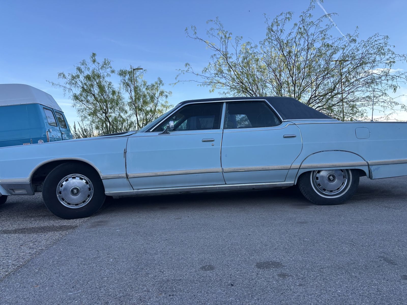 Classic full‑size luxury cruiser in a beautiful light blue with a dark blue vinyl roof This ’78 Grand Marquis is complete, straight, and fully functional in every area except the engine.