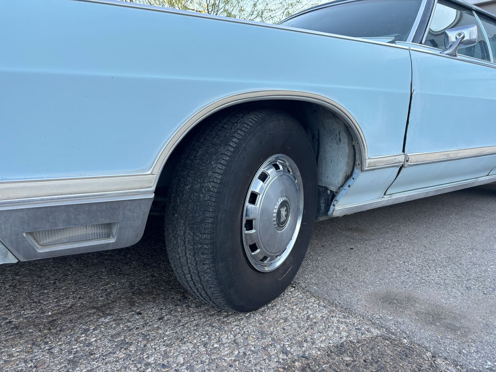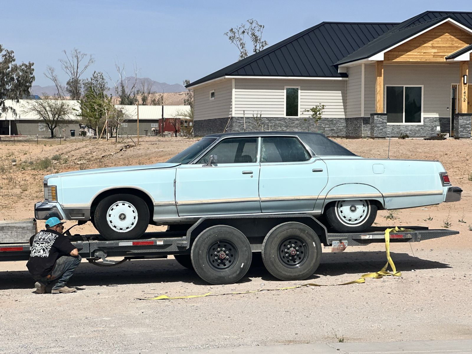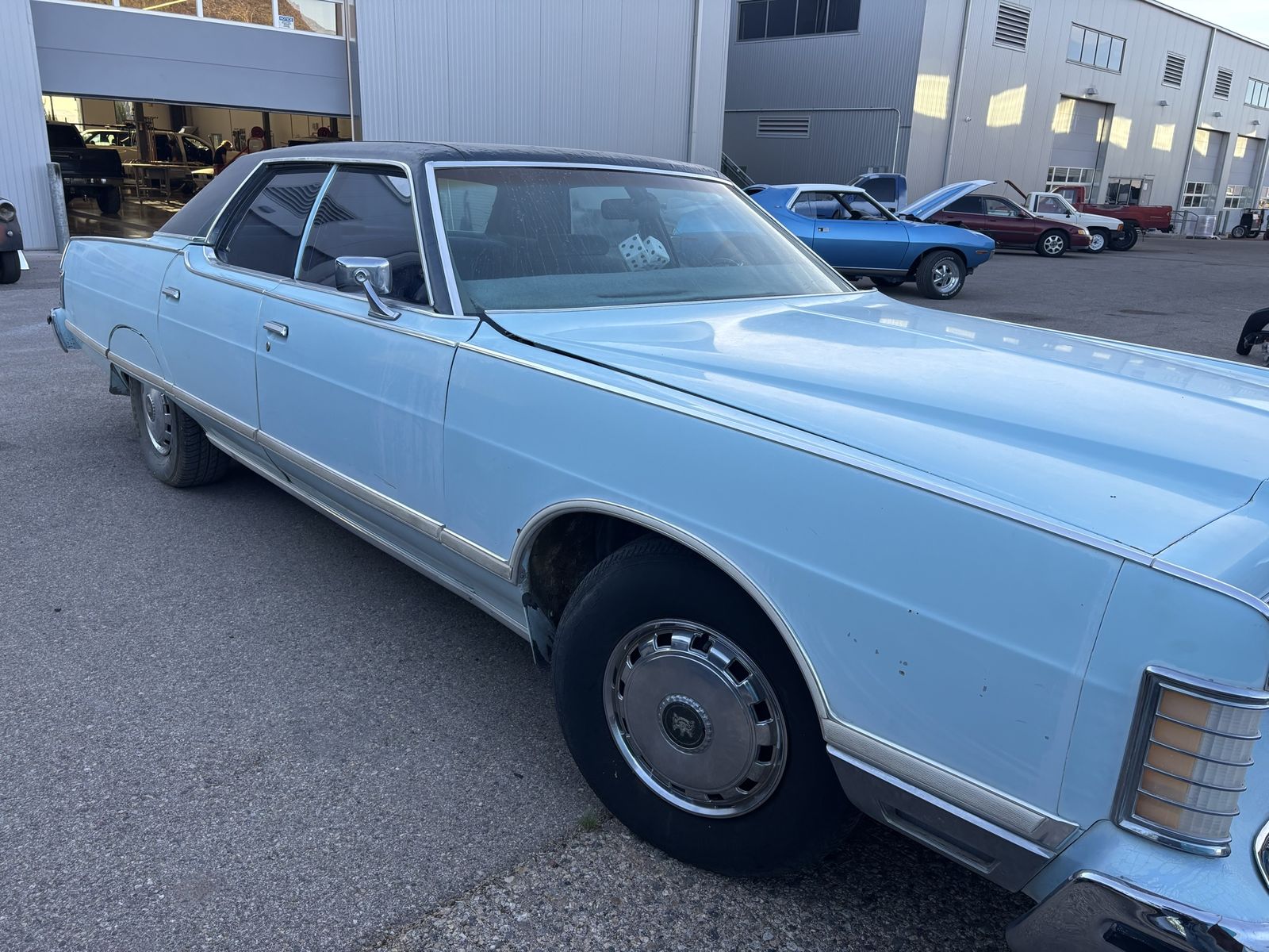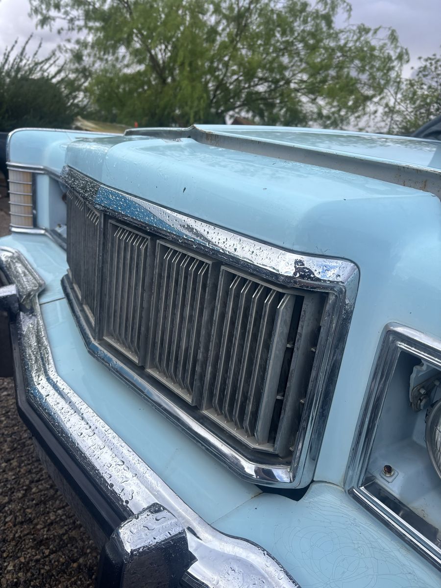 Classic full‑size luxury cruiser in a beautiful light blue with a dark blue vinyl roof This ’78 Grand Marquis is complete, straight, and fully functional in every area except the engine.
