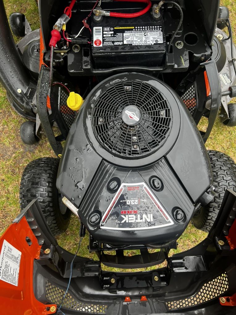 ZelleThis has 23hp intek Briggs with low hours. Comes with a triple bagger and a new battery. All the filters and oil has been changed and it’s ready to go.