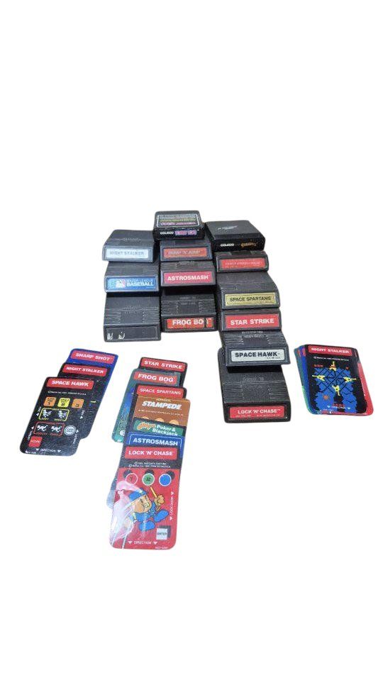 Includes a stack of games (Astrosmash, Frog Bog, Space Spartans, etc.) along with original controller overlays. Everything needed to plug in and play.