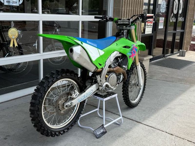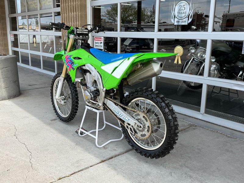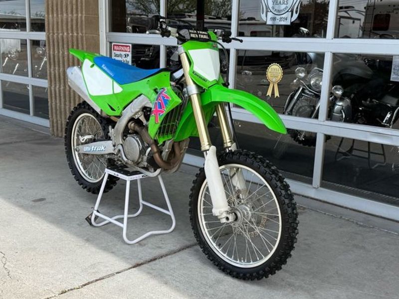 **Check www.ssautobrokers.com (http://www.ssautobrokers.com) for more photos and info! Temperatures are down and so are our prices! Take advantage of these discounted prices and find something you love! End-of-season = prices dropping here at SS Auto Brokers! Be a smart buyer and shop with the little guys to save you time and money! Our prices will NOT be beat! 2024 Quality Dealer of the Year! 27 years in business! We are very honored to be voted Utah's Quality Dealer of the Year! This is a reflection of ethical business and top quality service to our customers! We look forward to showing everyone why we were voted Quality Dealer of the Year! Buying from a broker with NO freight/fuel/set up fees and low overhead = LOWER prices! Having the best pricing in the industry, our pricing is the SAME for RETAIL CONSUMERS & DEALERS! Built to celebrate 50 years of Kawasaki motocross dominance, the 2024 KX450 50th Anniversary Edition combines factory-level race performance with retro-inspired styling that pays tribute to the iconic KX legacy. It delivers explosive 450cc power, race-tuned suspension, and modern electronics like launch control and traction control for total track control. We are located at 2070 Wall Ave, Ogden UT 84401. For more information please contact: Cameron 801-645-7880, Kobe 801-452-1228, Kooper 801-710-0378, or our Sales Dept at 801-334-6688. We have the best financing and customer service available. Visit our website at www.ssautobrokers.com (http://www.ssautobrokers.com) to see all of our inventory including cars/trucks/bikes/powersports/RV's/boats & more! WE TAKE ALMOST ANYTHING IN ON TRADE! DLR #1747 449cc liquid-cooled DOHC single-cylinder engine (4-stroke) (kawasaki.com) Fuel injection (44mm throttle body) ([turn0search12]) 5-speed manual transmission ([turn0search12]) Chain final drive Electric start system Hydraulic wet multi-plate clutch Aluminum perimeter frame Launch Control Mode for optimal starts Kawasaki Traction Control (KTRC) Selectable power modes (handlebar controlled) Smartphone tuning via RIDEOLOGY THE APP KX 49mm inverted front fork (coil spring, fully adjustable) Uni-Trak rear suspension with adjustable damping and preload Brembo front brake system (270mm disc) ([turn0search12]) Rear disc brake (240mm) ([turn0search12]) Front tire: 80/100-21 Rear tire: 120/80-19 Wheelbase: 58.3 inches (approx.) Seat height: 37.6 inches (approx.) Ground clearance: 13.6 inches (approx.) Fuel capacity: 1.6 gallons (6.2 L) ([turn0search12]) Curb weight: ~248 lbs (112.9 kg) ([turn0search12]) Slim ergonomic bodywork for improved rider movement Quick-release side panels for easy air filter access ODI Lock-On grips Adjustable handlebar and footpeg positions High-strength lightweight aluminum frame Aggressive motocross geometry tuned for racing