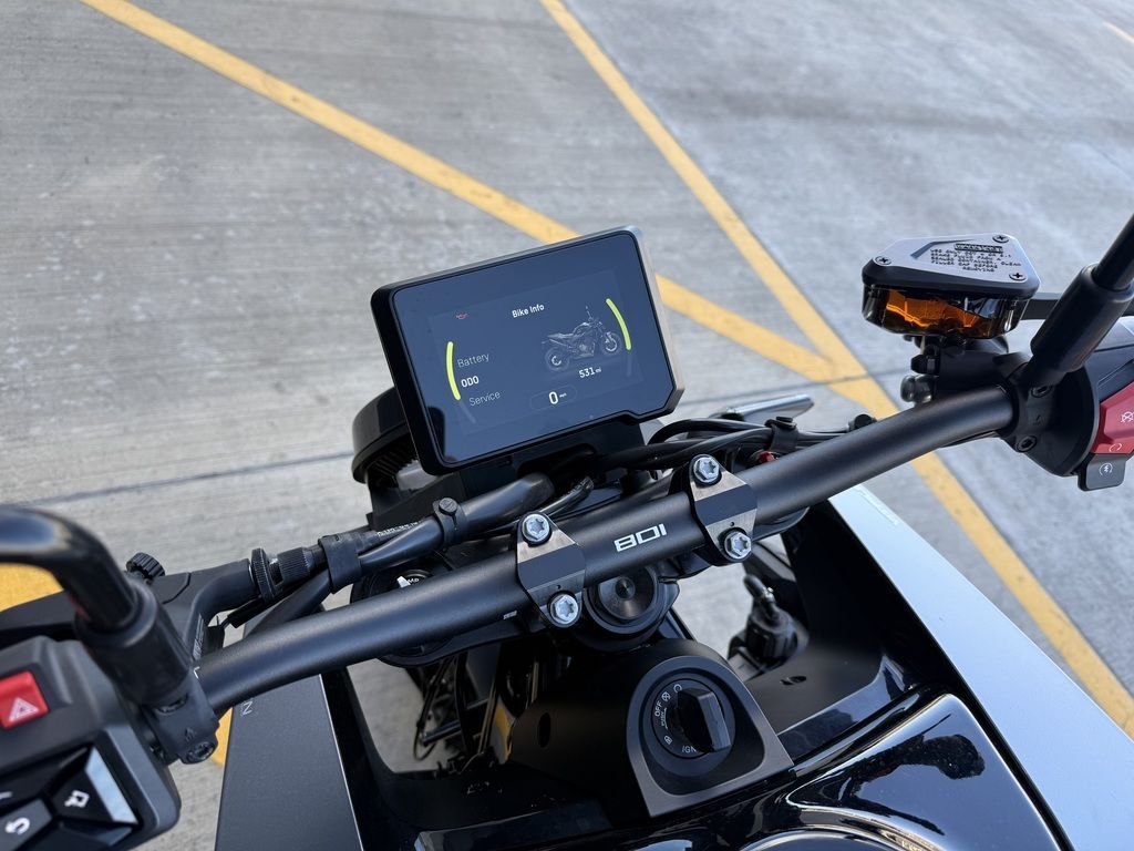 A 5" TFT dashboard with a bonded glass screen shows vital information to riders. The travelling speed, fuel level, and the selected gear are all clearly displayed and visible at a glance. It is controlled by the backlight switch cubes on the left side of the handlebar.