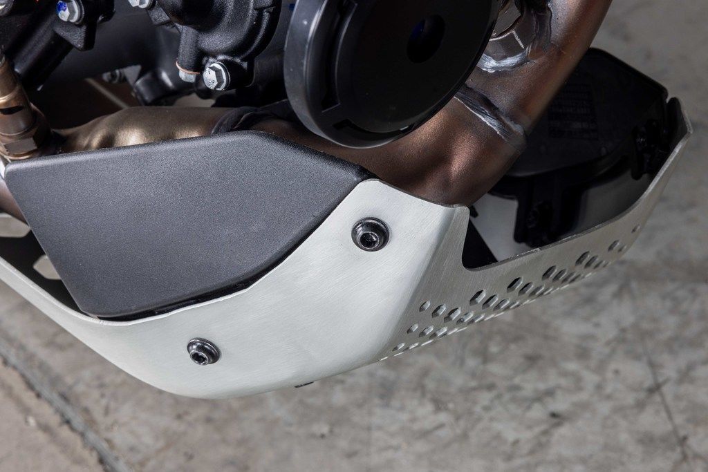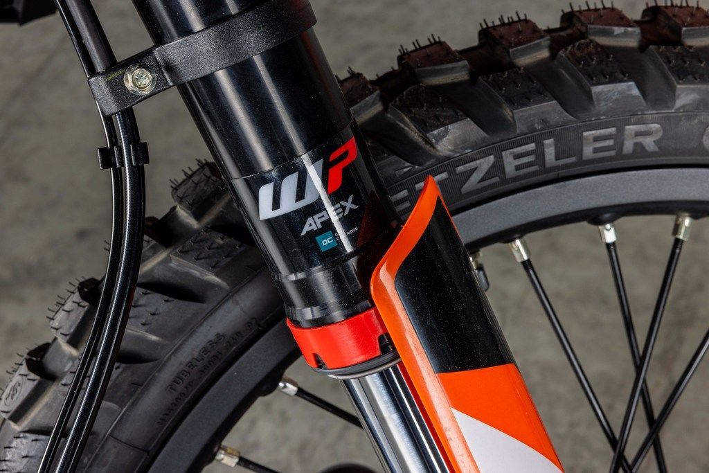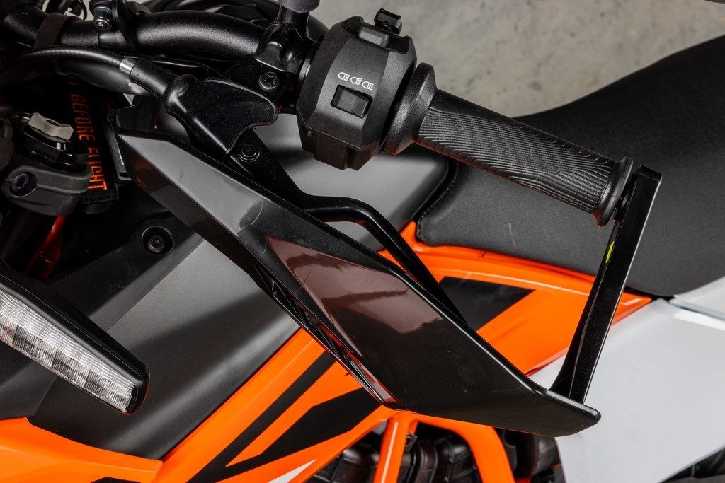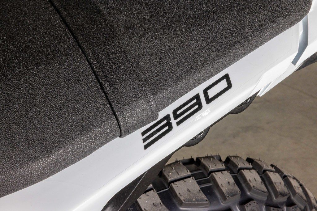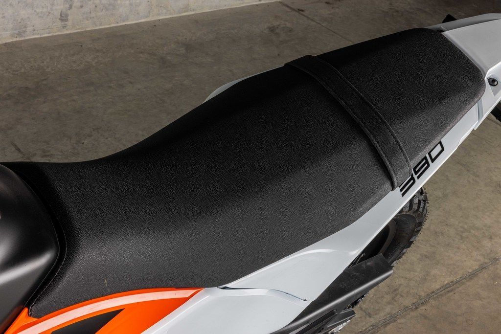 With an ergo-triangle inspired by its bigger brother, the KTM 690 ENDURO R, the KTM 390 ENDURO R features an aggressive handlebar shape, upright seating angle, and generous space for easy on-bike mobility.