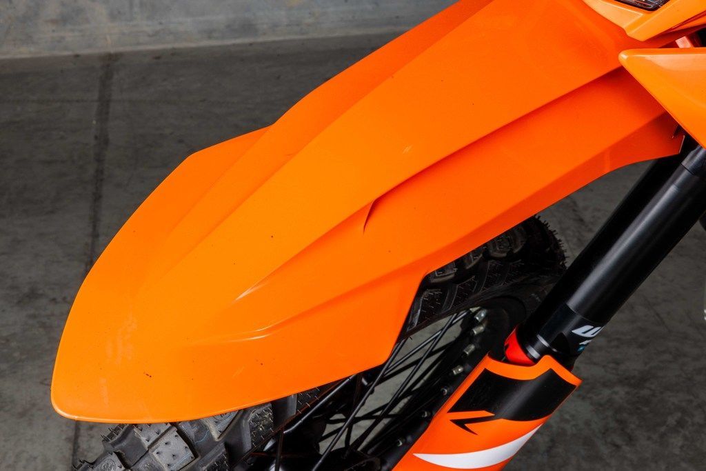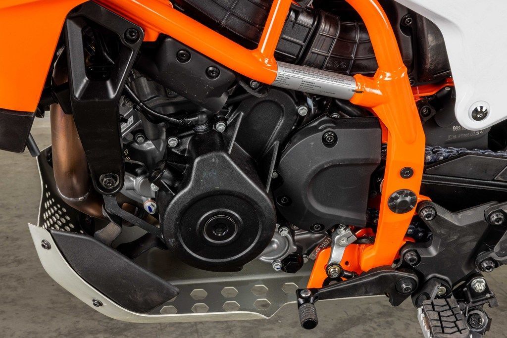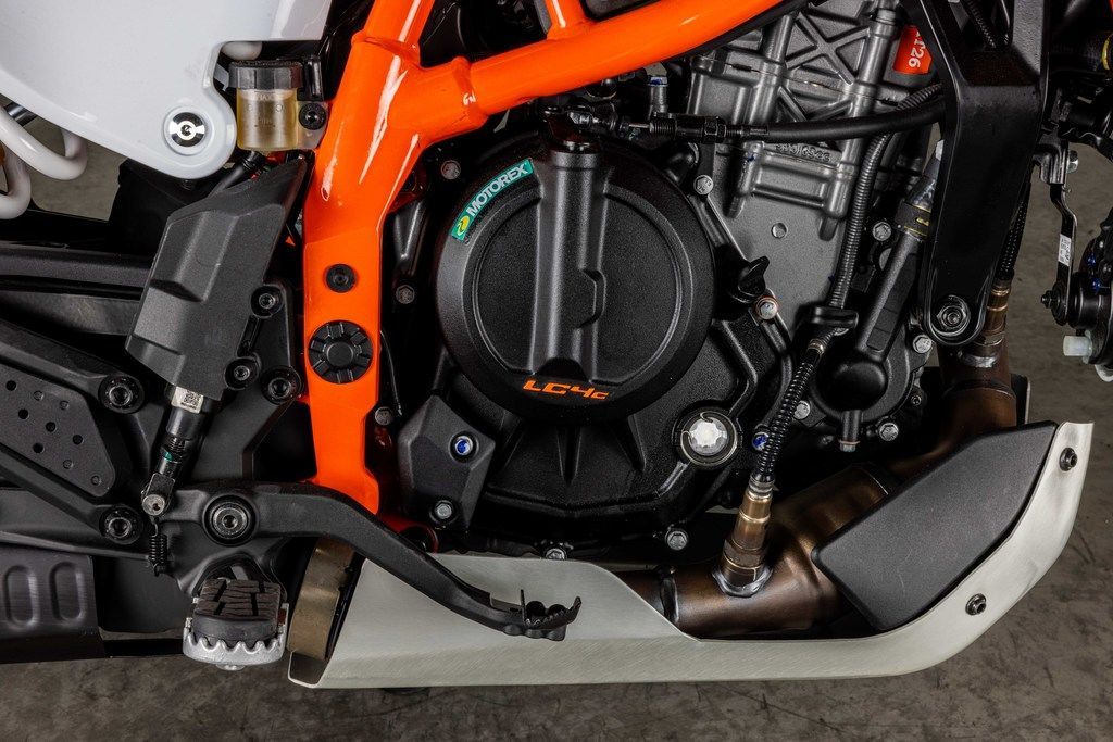 Boasting the latest generation of KTM's LC4c engine, the KTM 390 ENDURO R features a compact, 399 cc single-cylinder powerplant, churning out impressive power and effortless acceleration. This makes it ideal for charging through motorway traffic or up steep, gravel mountain passes.