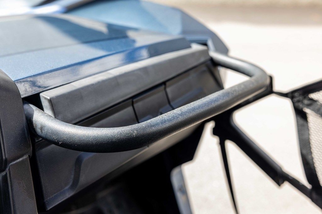 SUPERIOR PROTECTIONHeavy-duty front bumper for a beefier look and functionality. Bed rails installed on the Dual-level™ cargo box add more tie-down points for cargo carrying. Plus, mudguards create an extra layer of protection for the occupants.