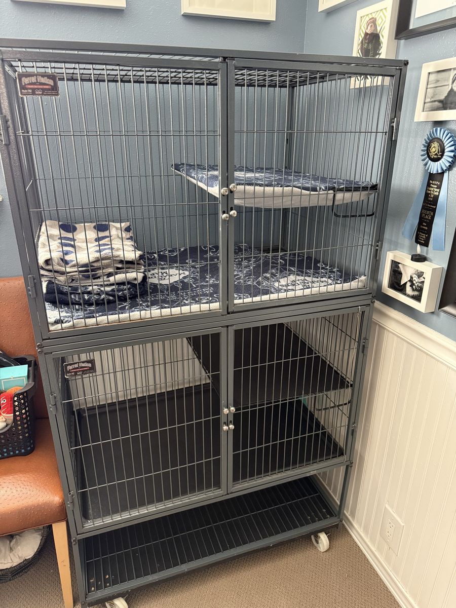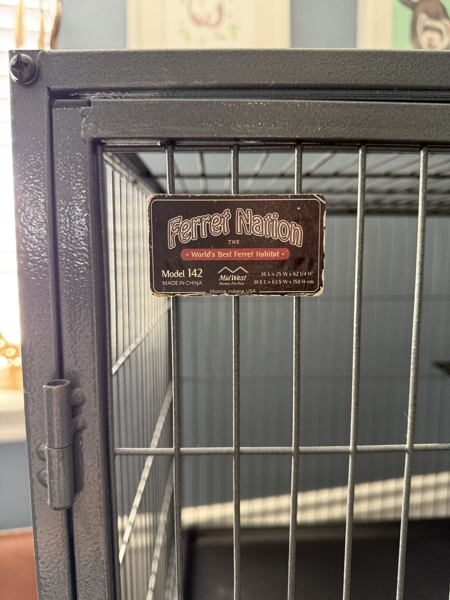 ApplePayFerret Nation Cage Pet cage Small animal Ferret, bunny, rat, chinchilla 36L x 25W x 62.25H 2 sections, 4 levels. 2 section can be separated Storage area underneath 2 inside ramps included Custom fitted shelf covers included $250 or best offer