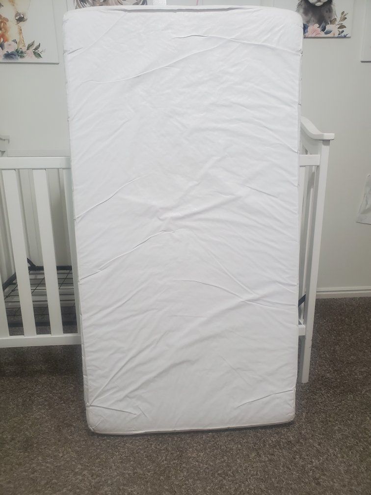 VenmoWhite, sturdy crib, in great condition! You can have the mattress too. Mattress used for only one clean child. ;)