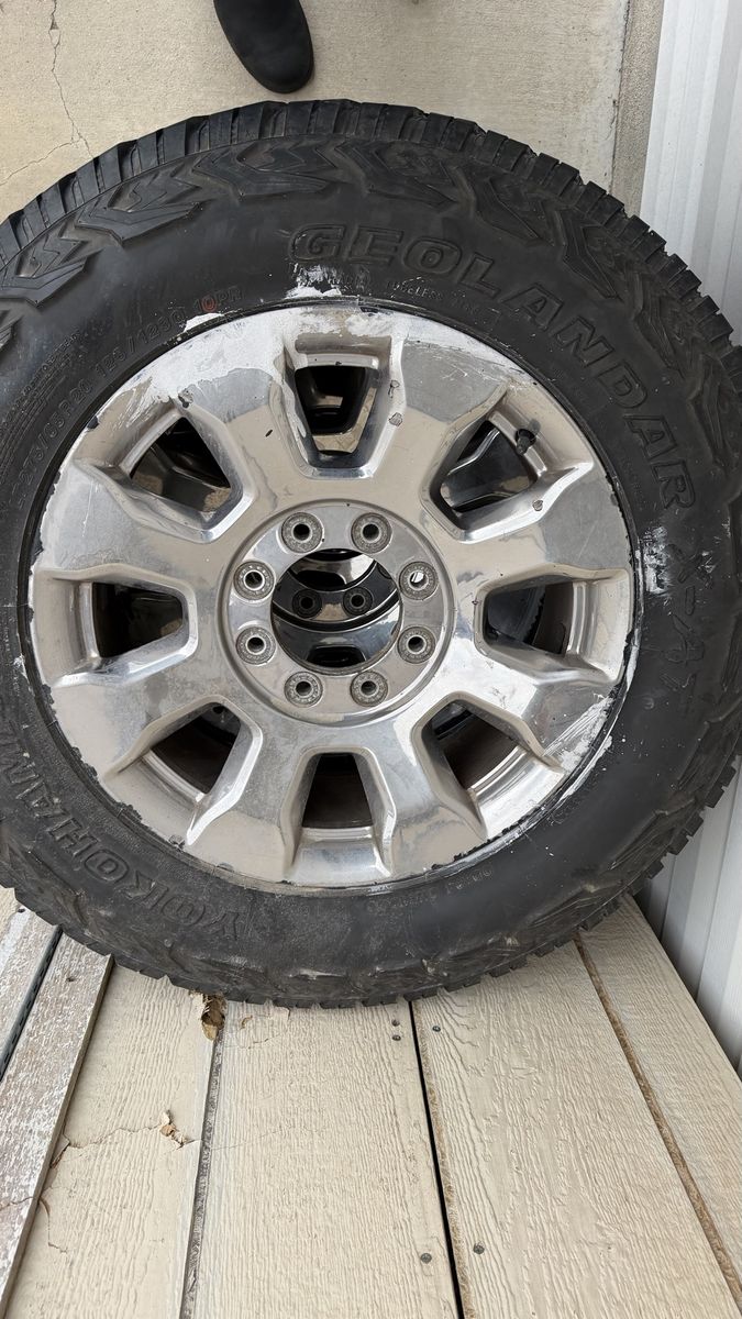 I have a set of take offs from a 2018 F250 super duty 8x170 with lug nuts and caps. They do not have the sensors in them, they were dead. The soap is still on the wheels from the tire shop removing the sensors. Never mounted them onto my truck so I am just looking to get rid of them as they are taking up space. First 50.00$ cash takes them. Thanks for reading!