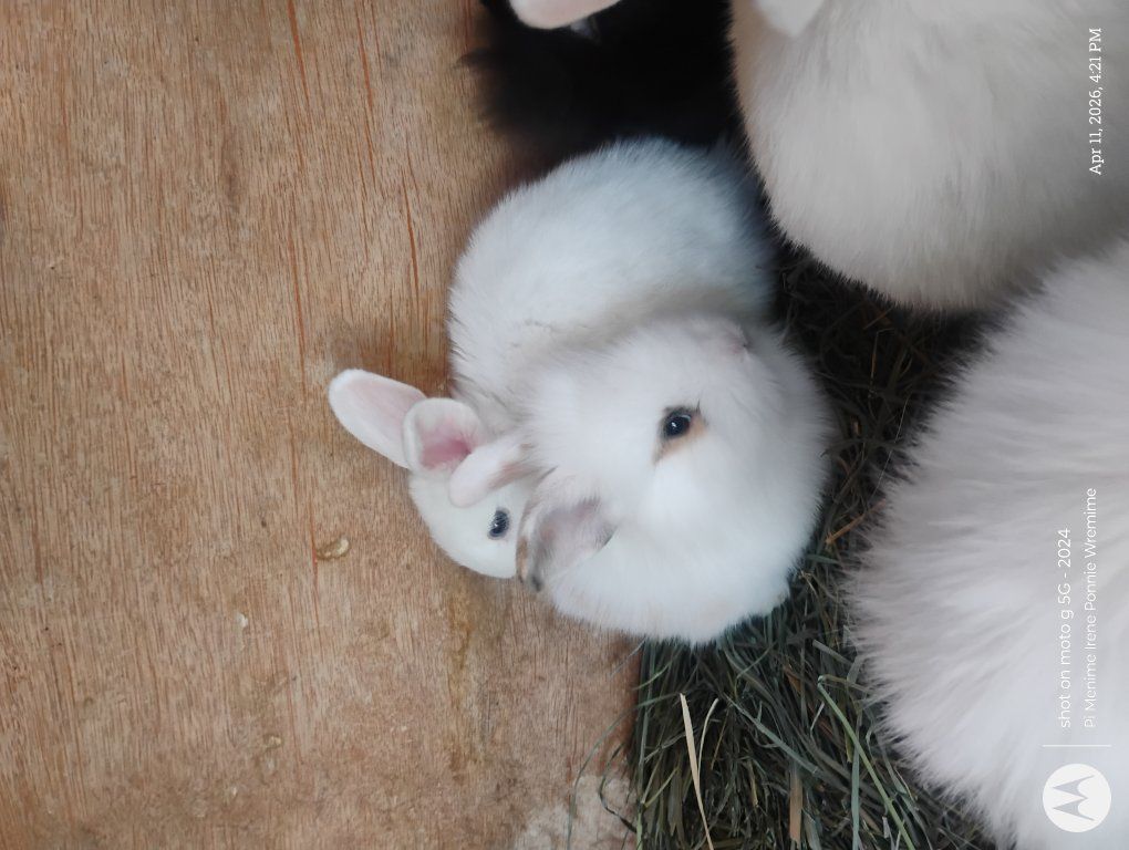 white baby bunnies for sale to good home text Sadie (385)-265-9061 1 white and grey spotted girl 1 white boy ($25/ea.) born beginning of March