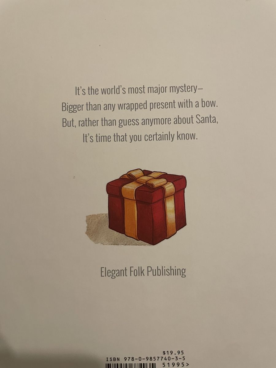 PayPalHardback book with interesting illustrations. Designed as a story to share with kids as they begin to ask questions about Santa. Truthful, practical explanation of the spirit of jolly old soul.