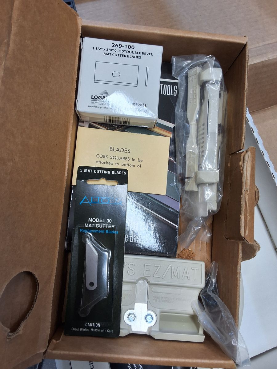 VenmoAlto's Mat Cutting System, circular cutting system included, nearly a full box of 100 extra blades. All manuals included, Like new, Standard mat boards 29@ 32 x 40 uncut sheets, 14 @ standard partial sheet of various sizes, 23@ standard not full sheets up to 24 x 32 sheets, 9@ 32 x 40 premium mat boards and 9 partial sheets of various sizes, and numerous various size pieces. Take all, will not separate. Approx value of $775, all for $250 my. Venmo or cash only, no holds.