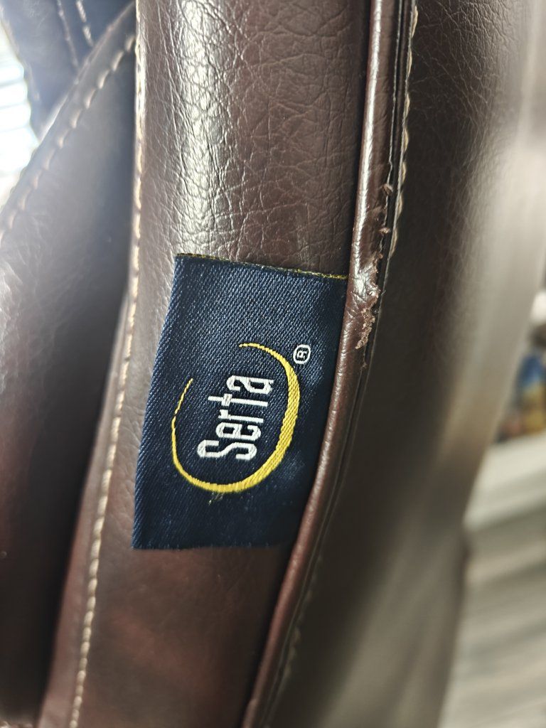 VenmoUsed Serta office chairs (2 available). Raises and lowers just fine, with fixed arms. No broken casters. There is cracking in the surface as seen in pictures. These will be gone by Saturday evening.