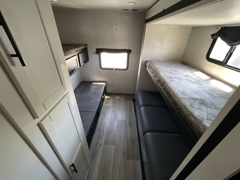 The 2024 Crossroads Cruiser Aire 33BHB is a family-friendly travel trailer designed for comfort and convenience on the road. It features a spacious bunkhouse, a full galley, a private master bedroom, and a modern bathroom—perfect for families or groups. With smart storage, durable construction, and entertainment options, the 33BHB makes long trips feel like a home away from home.