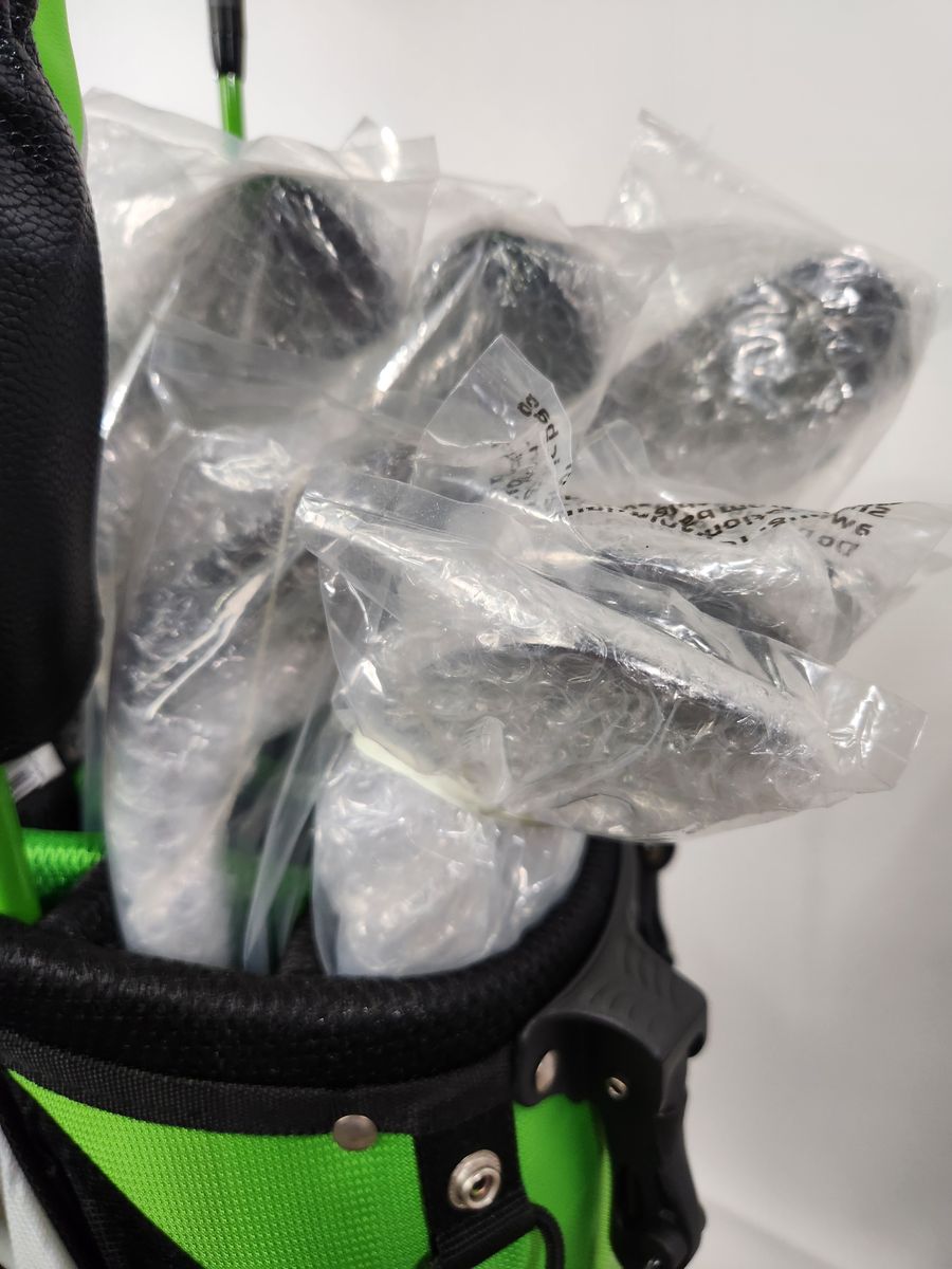 The driver has been hit- but the irons, the wedges, the putter are all still wrapped in bubble wrap and haven't even been unwrapped.