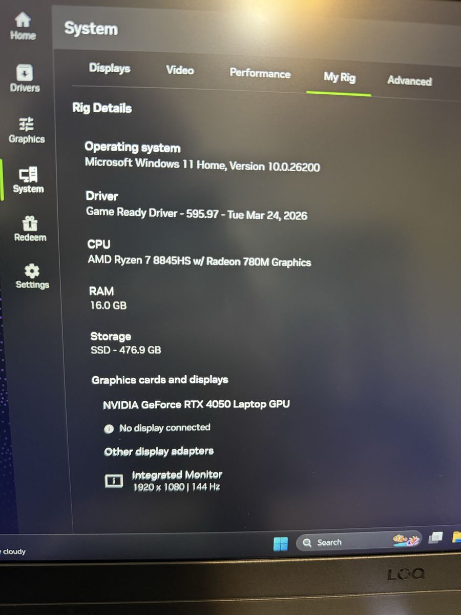 Ryzen 7 8845HS RTX 4050 8GB 16GB DDR5 Ram 500GB storage