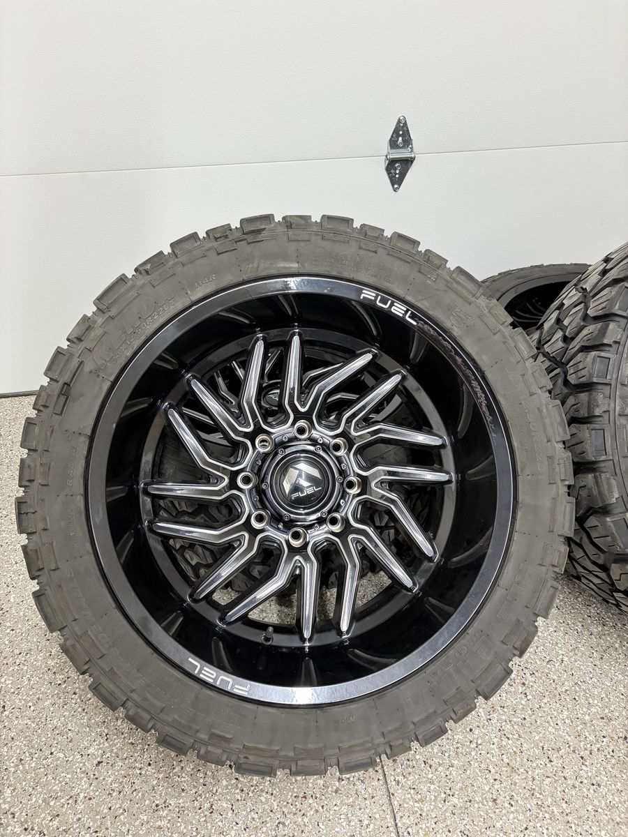 Selling a set of 22x12 Fuel Hurricane wheels (8x180) wrapped in Kenda Klever R/T 33x12.50R22 12-ply tires. Wheels are in great shape with TPMs sensor and no curb rash, tires have about 75% tread remaining, and just freshly balanced. Will fit HD GM trucks 2011+. Clean, aggressive setup ready to bolt on. Message me if interested